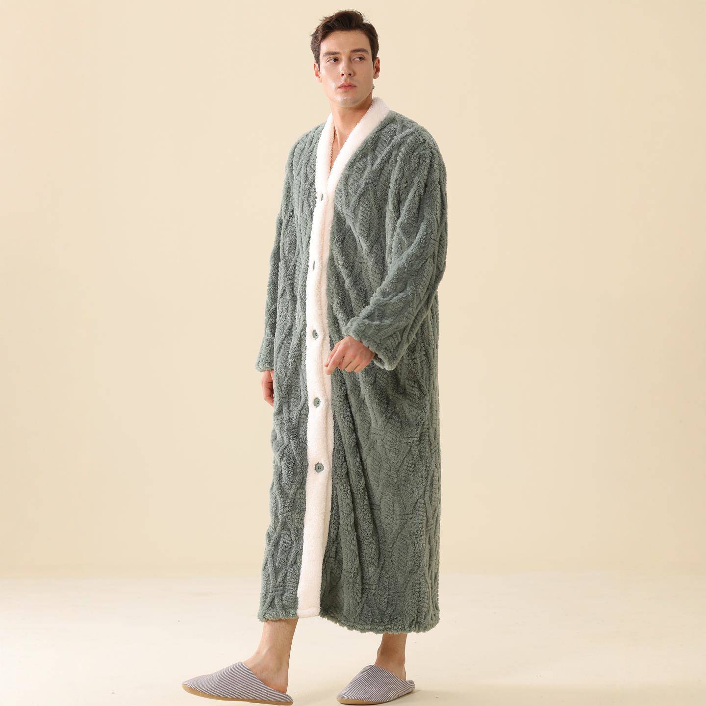 系纽扣子2025新款 加长款 家居服保暖珊瑚1009c 秋冬季 秋冬睡袍男士