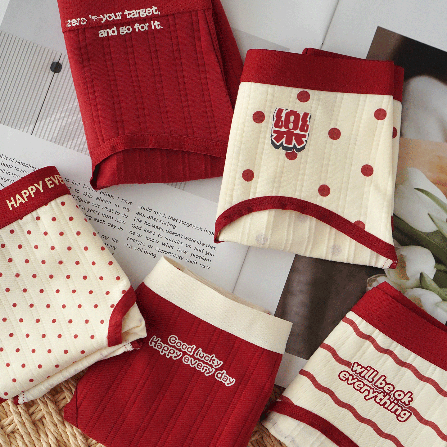 2026马年本命年内裤 女生纯棉安可拉红色7A抗菌裆新年中腰透气短裤