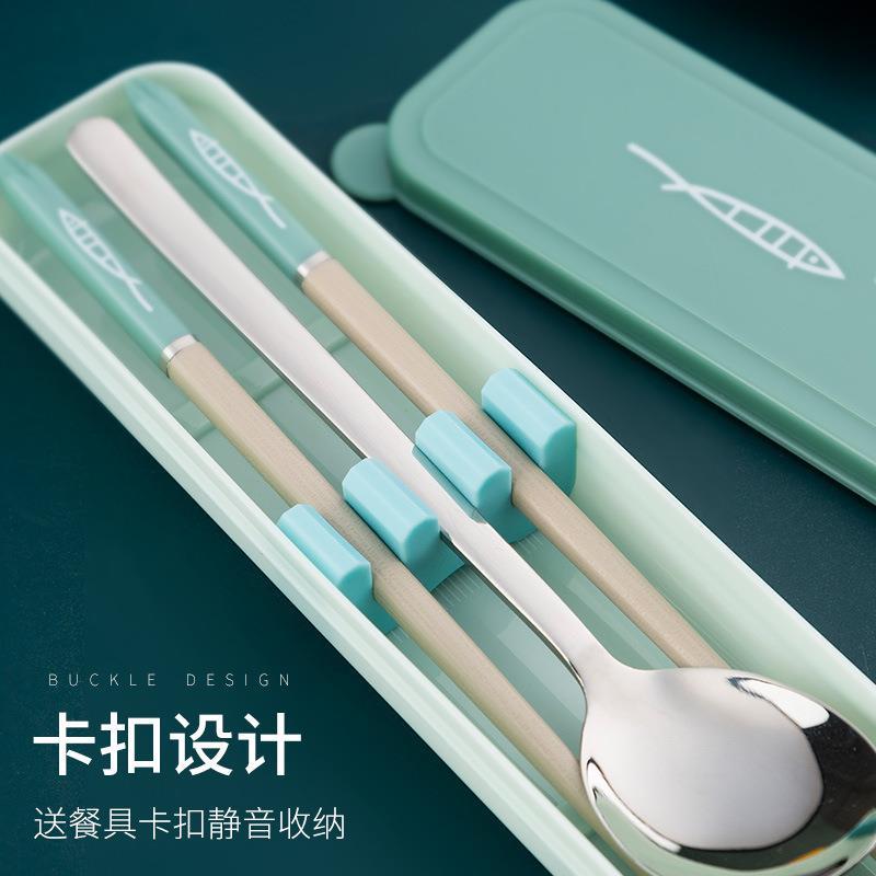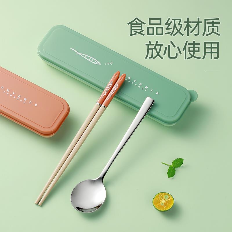 筷子勺子套装 一人用收纳盒 可爱小学生上班族户外便携餐具盒单人装