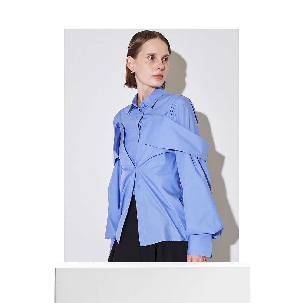 单扣半露肩叠层衬衫 1h可退 飘逸X型下摆 女装 日本直邮ELENDEEK