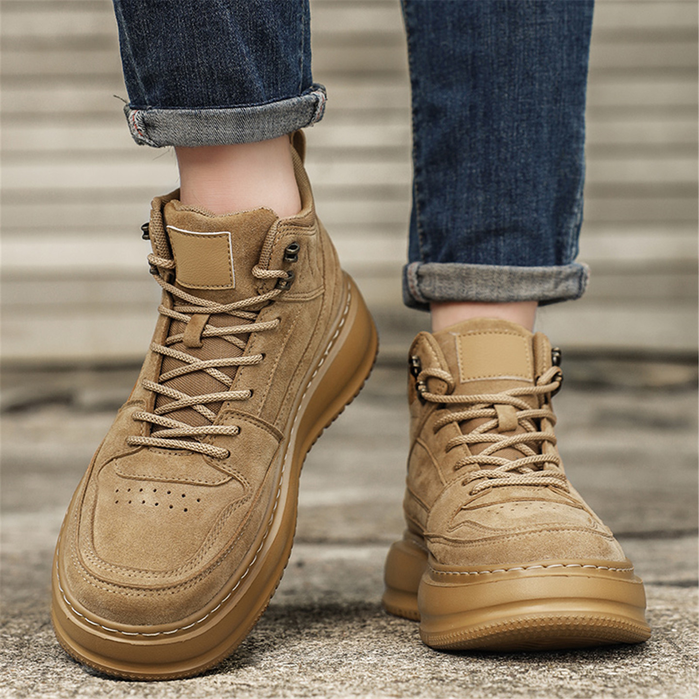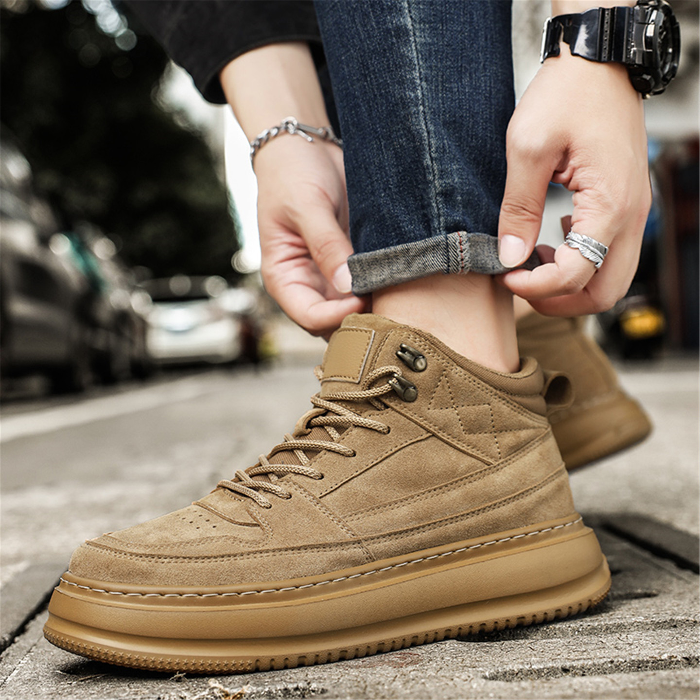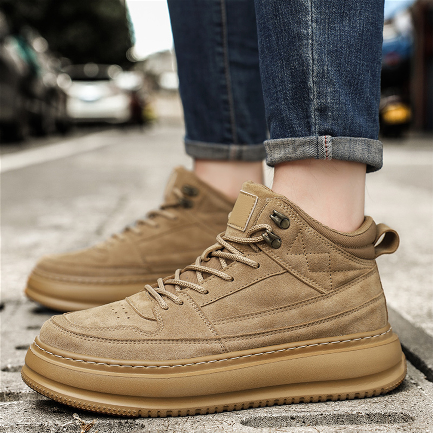 靴子 真皮防水厚底增高工装 森马马丁靴男秋季 高帮百搭休闲白色板鞋