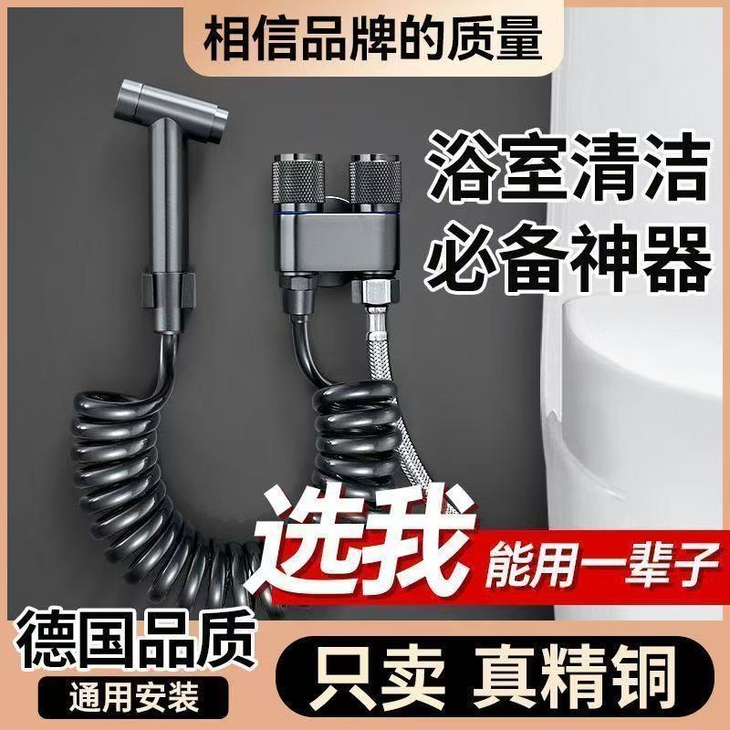 枪灰色高压马桶伴侣冲洗喷枪一进二出家用厕所全铜角阀妇洗喷头