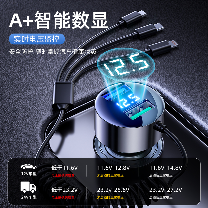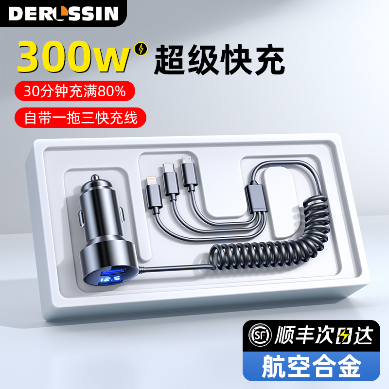 车载充电器一拖三超级快充手机点烟器转换插头车充汽车用usb接口