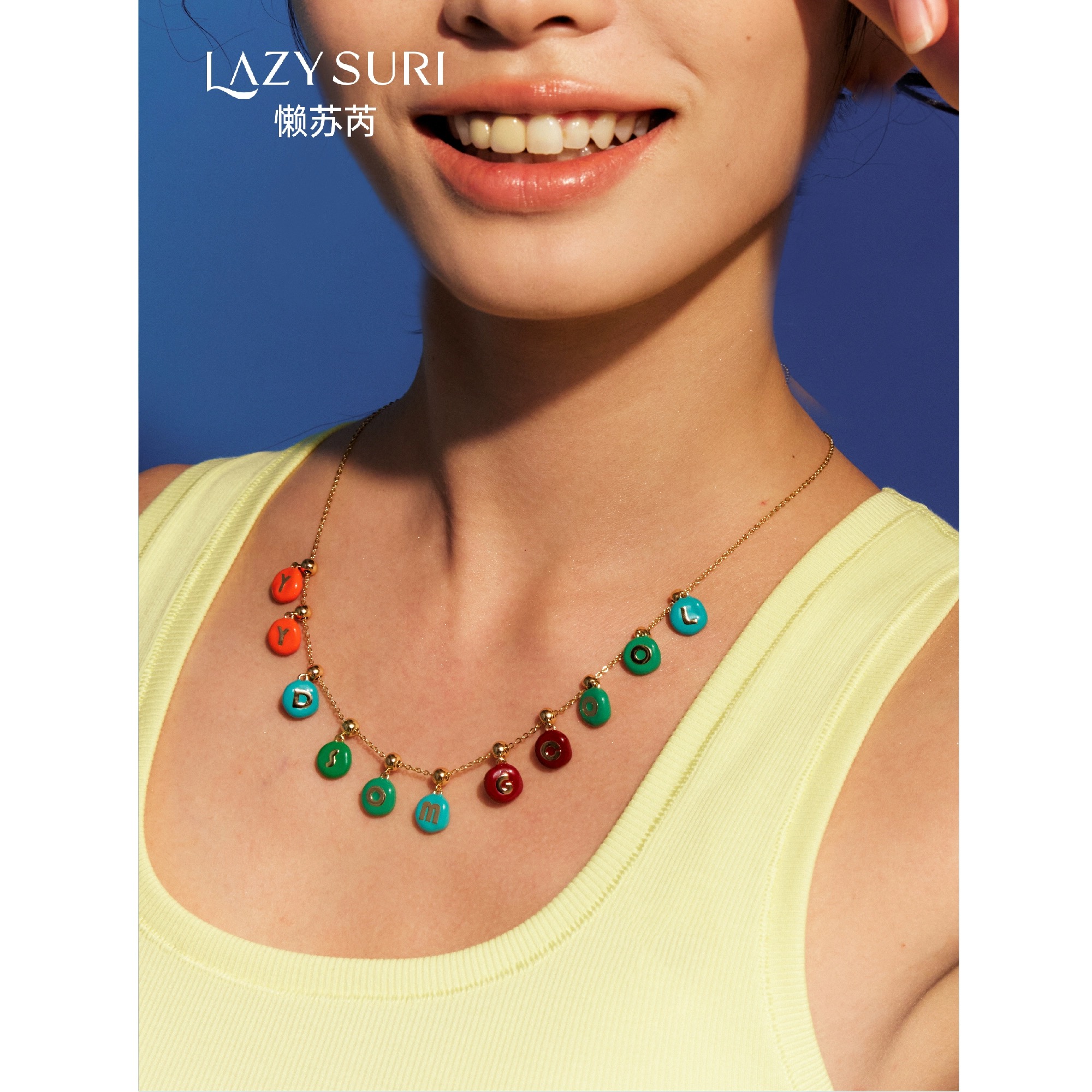 ZEGL小方豆明星同款 字母项链女笑脸花花吊坠锁骨链可爱甜酷颈链