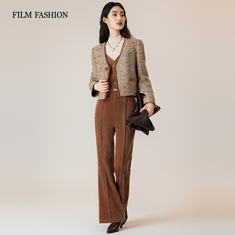 高腰喇叭裤 一电影一时装 微喇长裤 新款 立体分割修长好看今年女 冬季