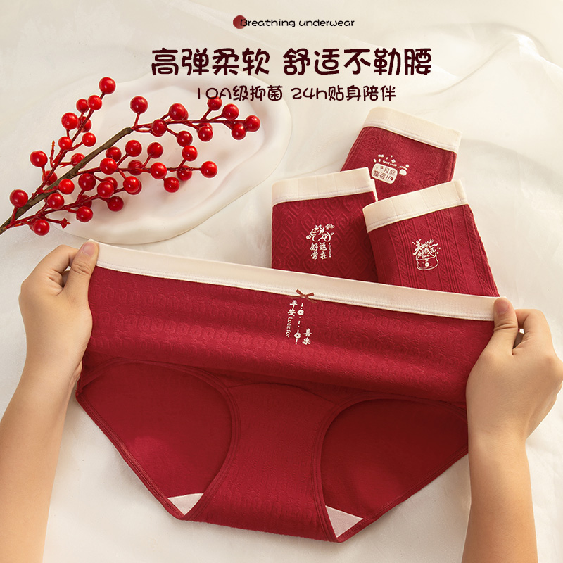 都市丽人红色女士内裤 纯棉抗菌裆本命年2025蛇年结婚少女三角短裤