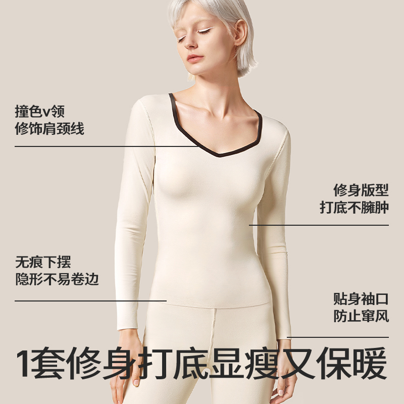 情侣无痕修身 保暖内衣套装 加拿大鹅绒 内搭打底 娜扎同款