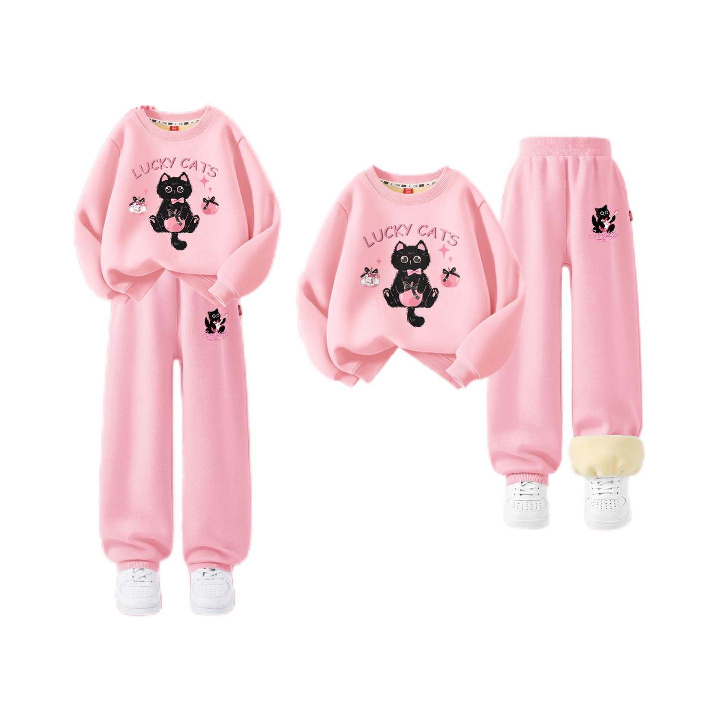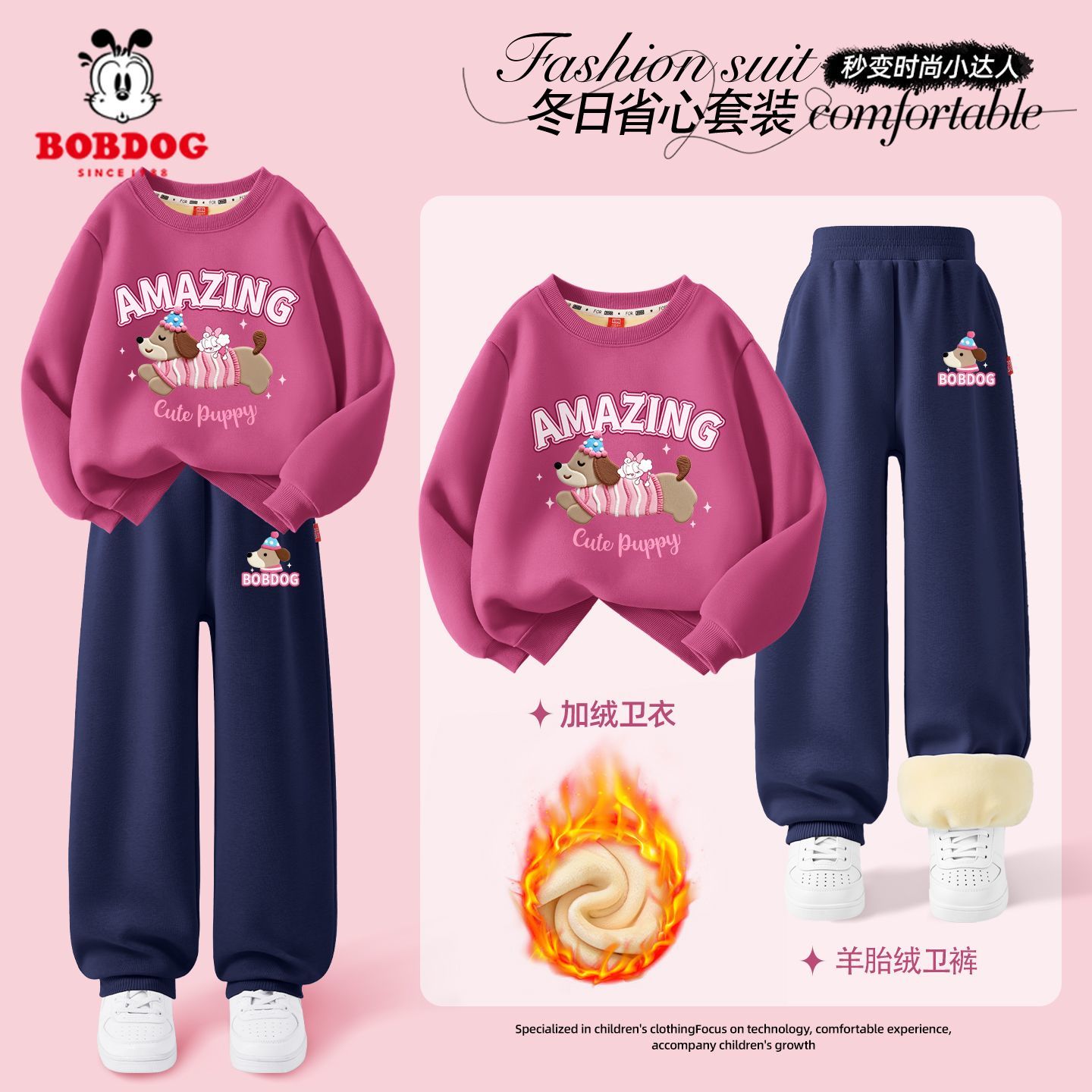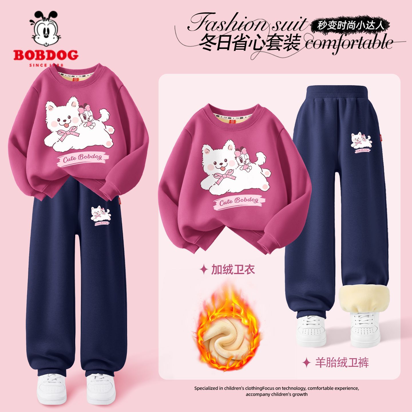 子冬装 巴布豆女童冬季 女宝加厚卫衣一体绒儿童加绒裤 2025新款 套装