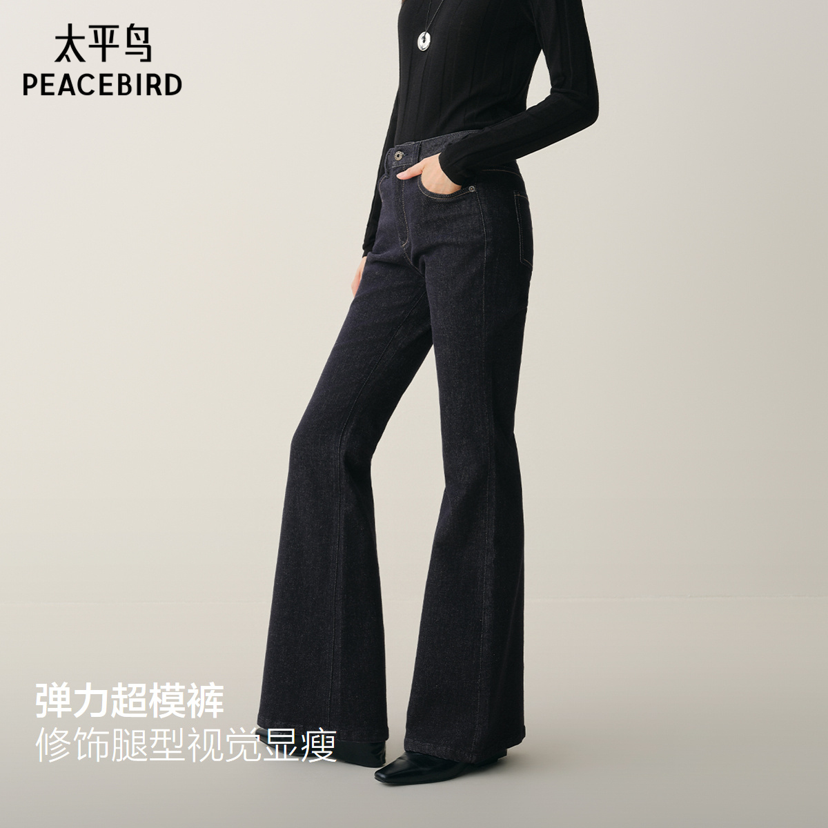 小个子马蹄喇叭裤 修身 子 女2025年春秋新款 蓝色高腰弹力微喇牛仔裤