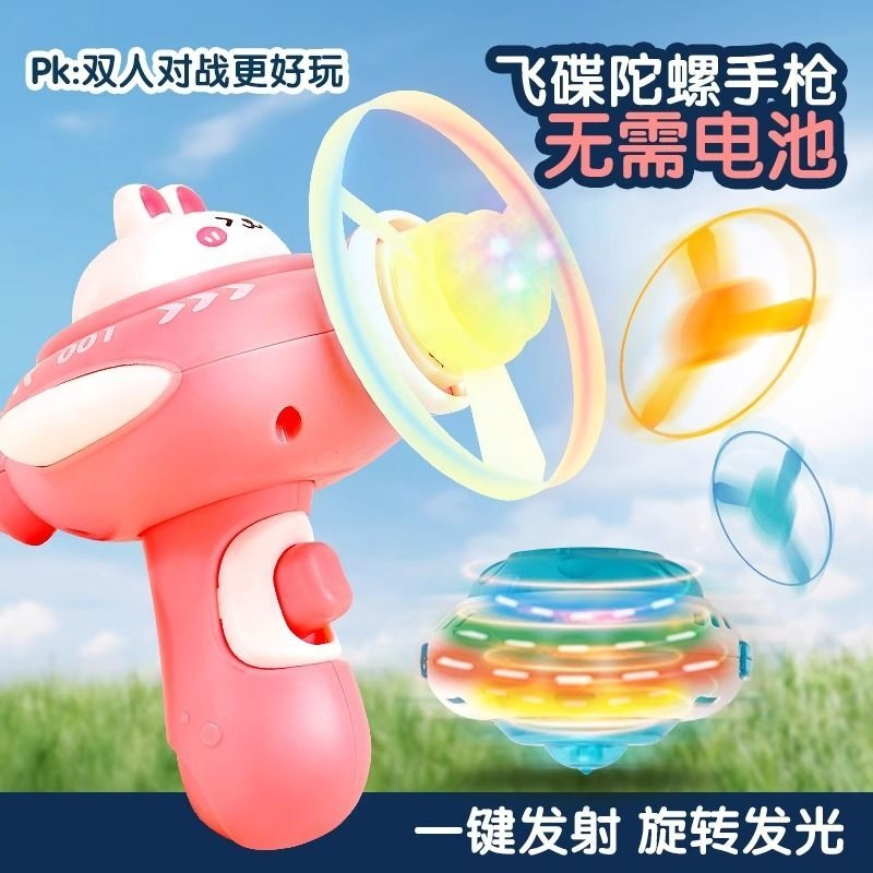 发光竹蜻蜓手枪飞天仙子飞碟弹射旋转陀螺飞盘户外儿童女男孩玩具