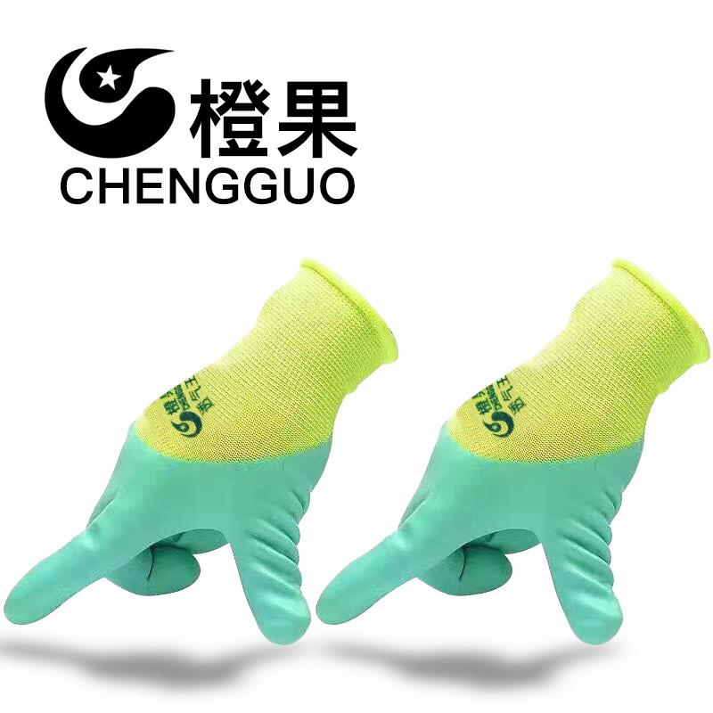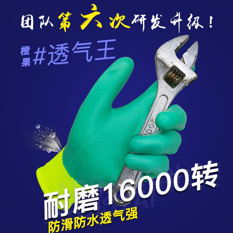 橙果橡胶劳保手套耐磨工作防滑透气乳胶浸胶工地干活胶皮防护手套