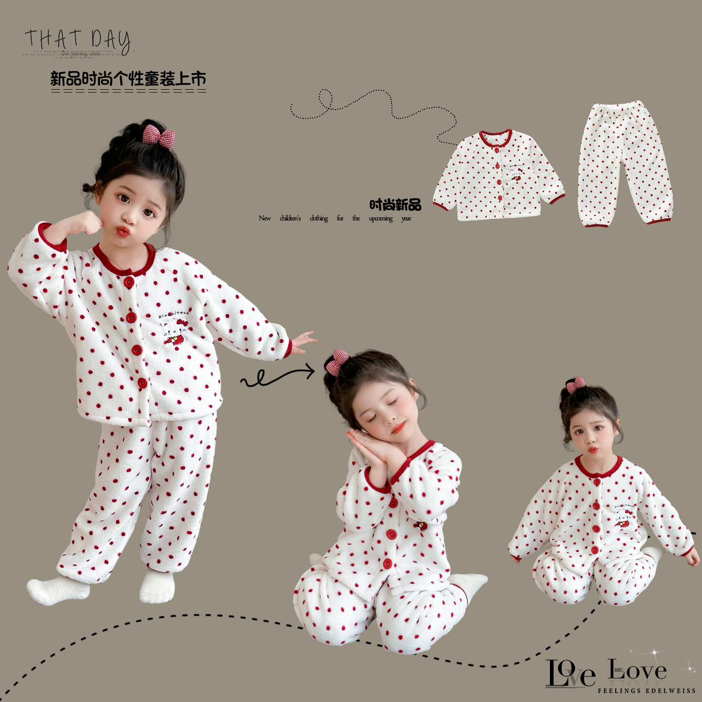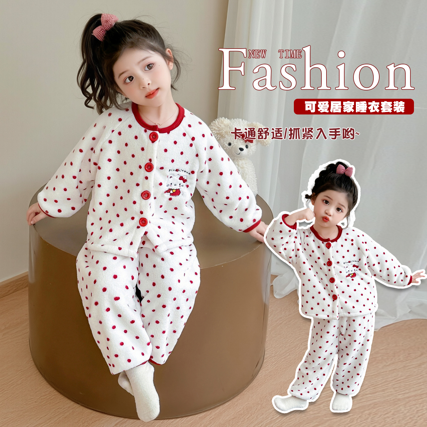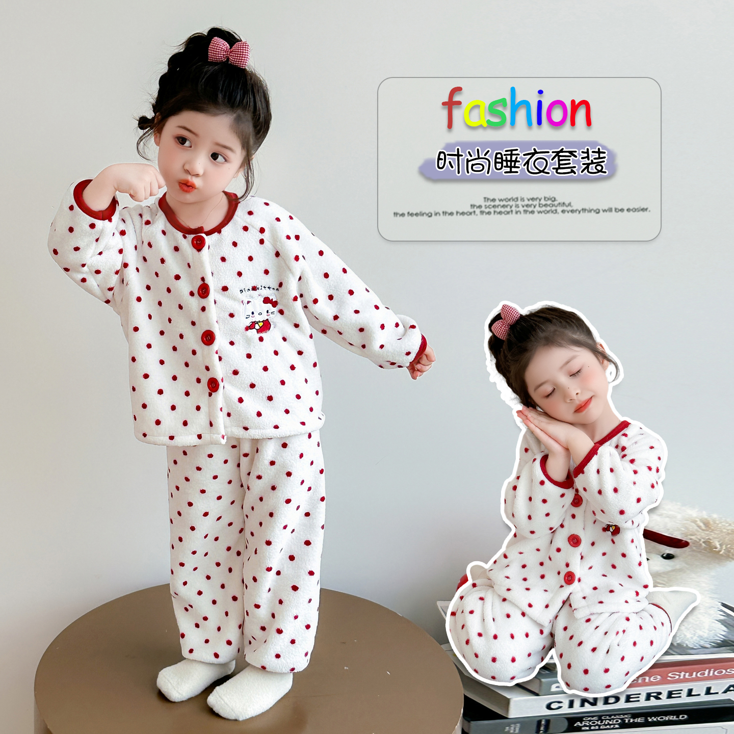 中小童薄绒珊瑚绒家居服秋冬装 套装 新款 女童法兰绒睡衣女宝宝冬季