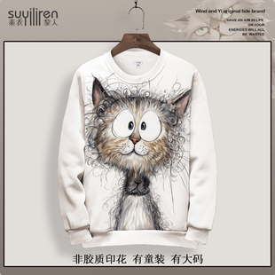 潮牌宽松休闲外套上衣服 新款 美式 重磅麂皮圆领卫衣男女2025春秋季