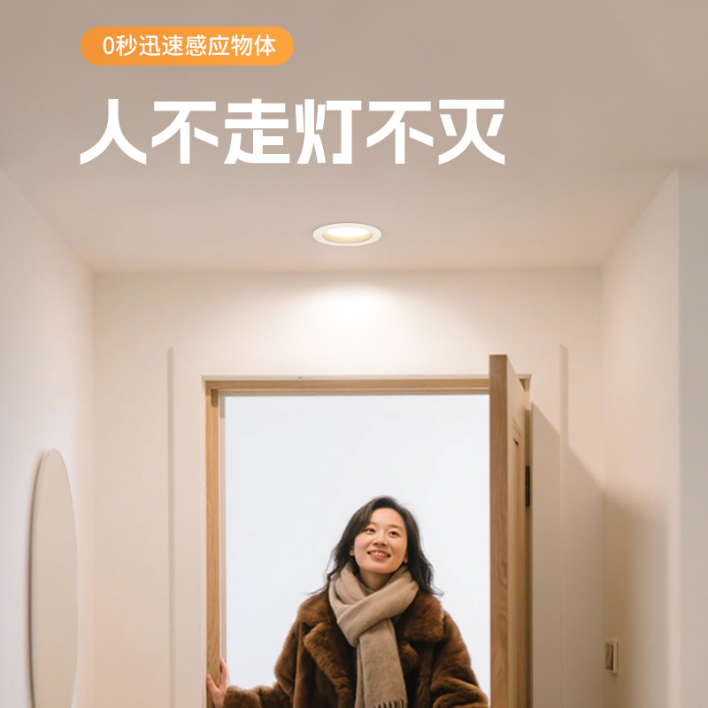 人体存在筒灯2025新款 人在一直亮入户门微波雷达感应嵌入led射灯