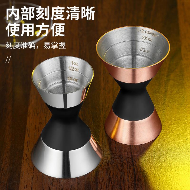 新品 酒吧量酒器量杯304不锈钢硅胶分酒器双头盎司杯带刻度鸡尾酒