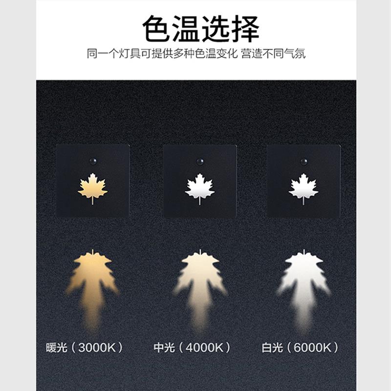 米尔 墙角灯楼梯踏步灯台阶灯过道智能感应地脚灯 枫叶86型嵌入式