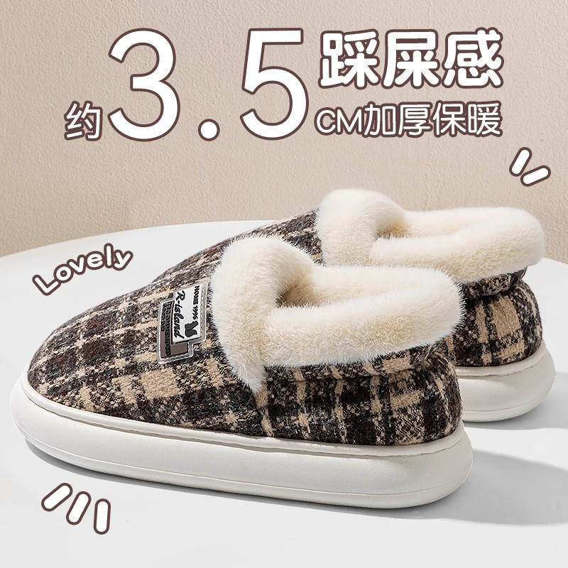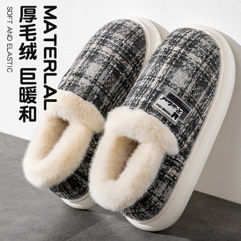 女厚底 居家毛毛绒保暖加厚软底防滑情侣包头拖鞋 棉拖鞋 男秋冬季