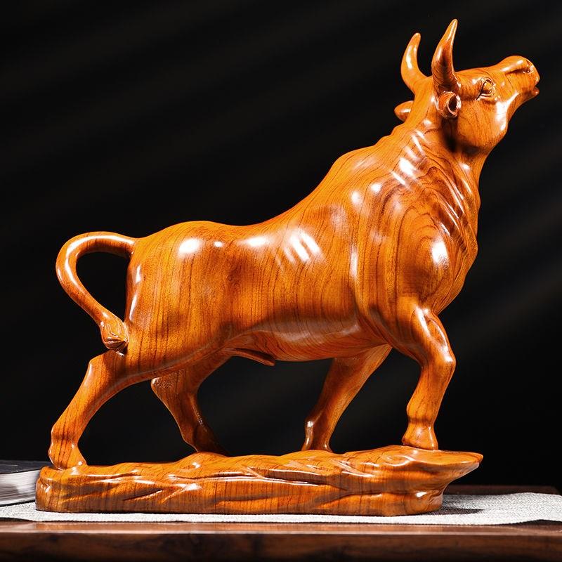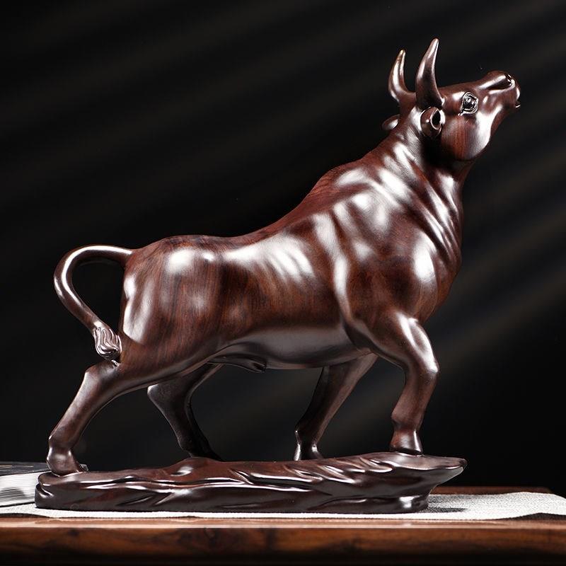 木雕牛摆件动物十二生肖牛黑檀实木牛气冲天家居客厅装 饰工艺礼品