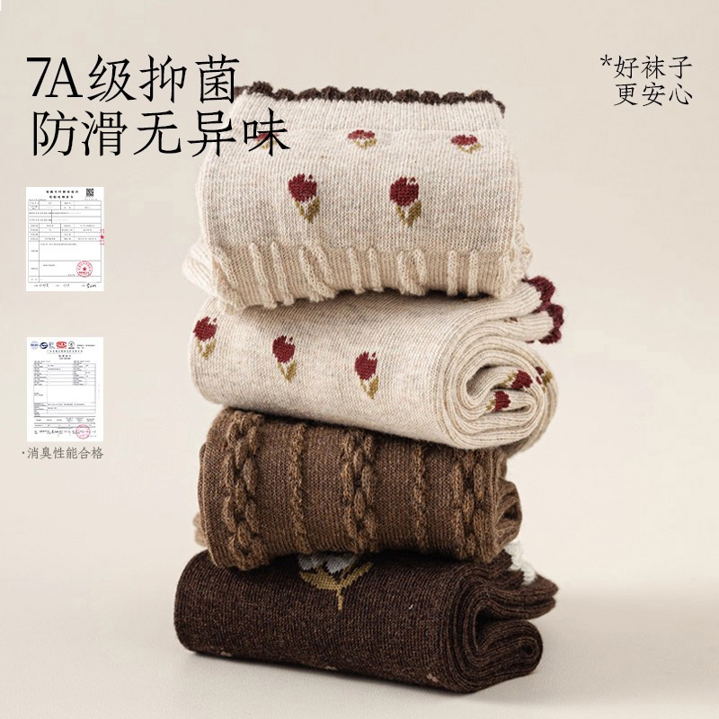 纯色棉袜防臭抗菌无骨长袜木耳边森系中筒 爆款 袜子女2025秋季 新款