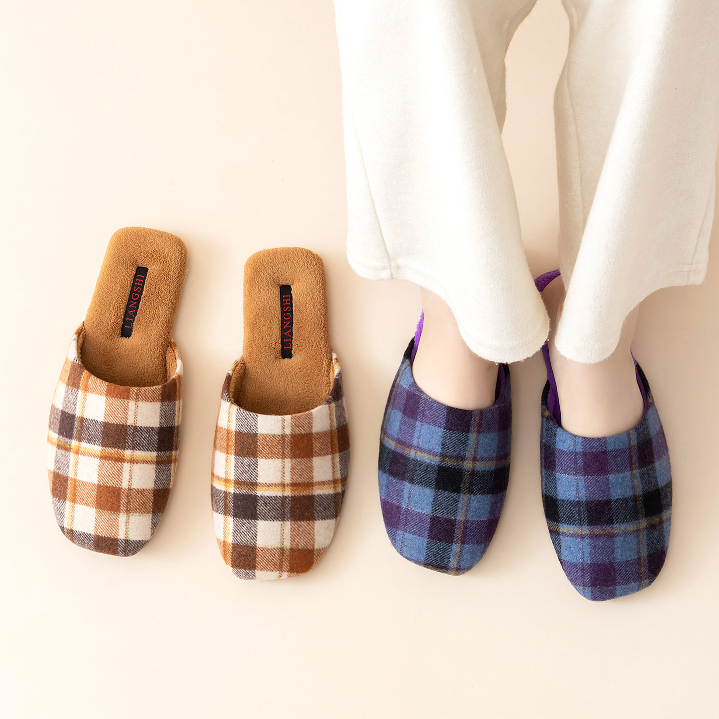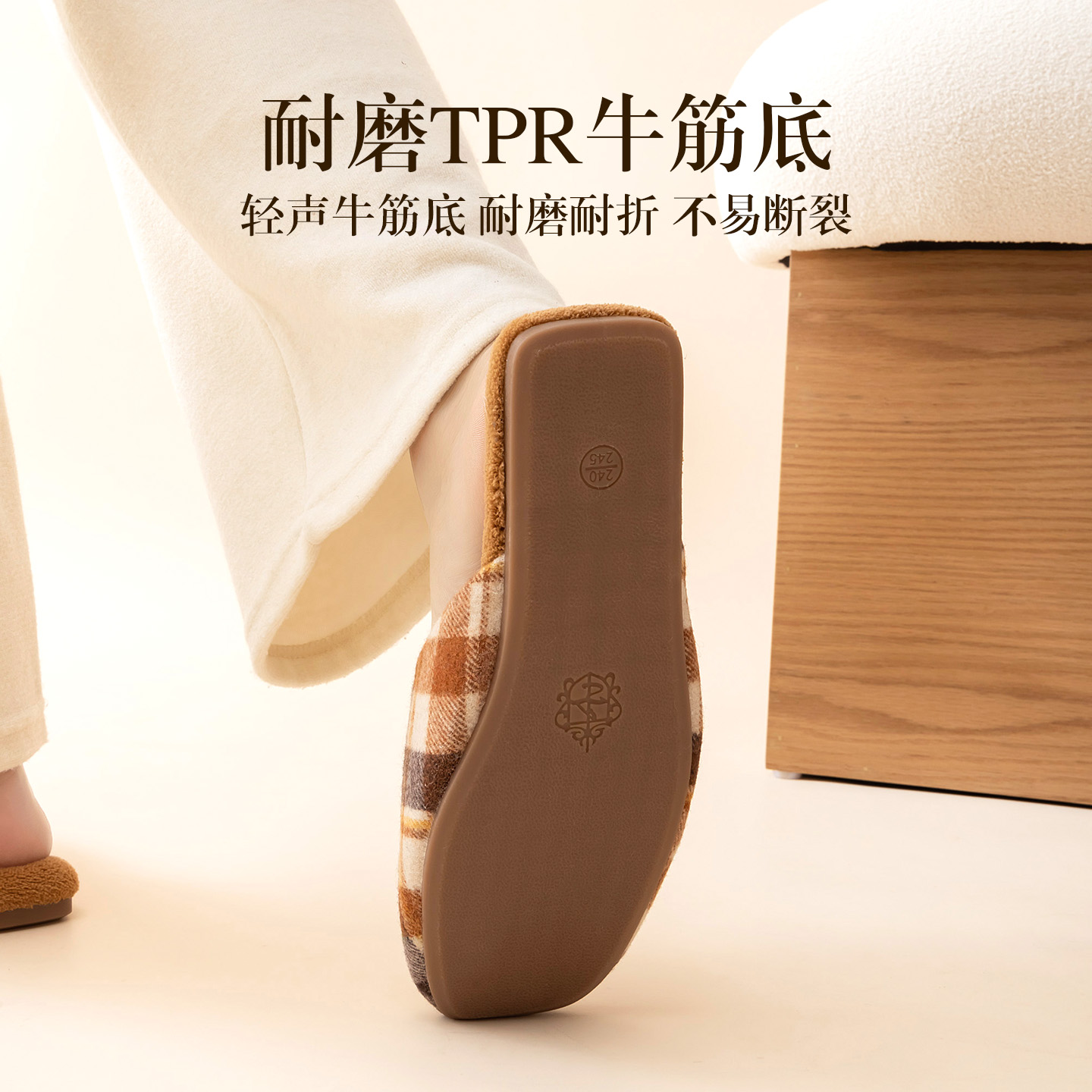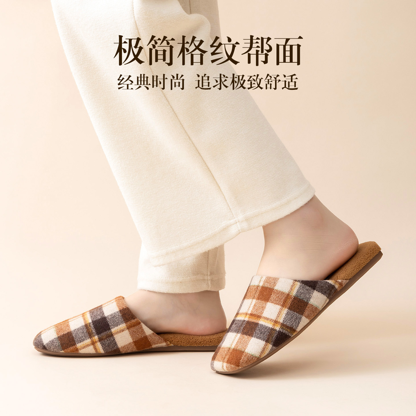 保暖牛筋底静音拖鞋 居家用室内情侣款 男 女秋冬季 韩泰达格子棉拖鞋