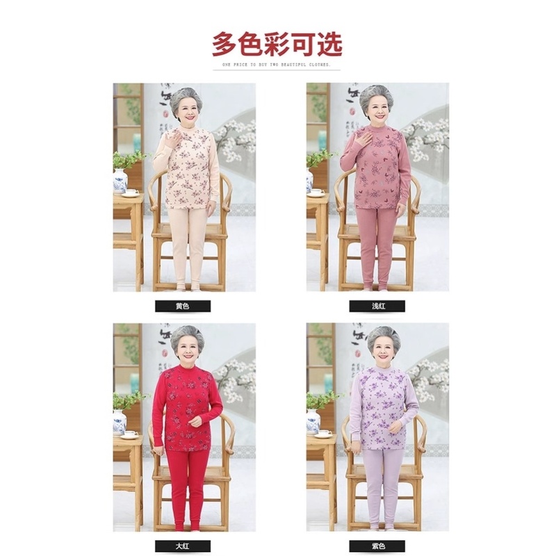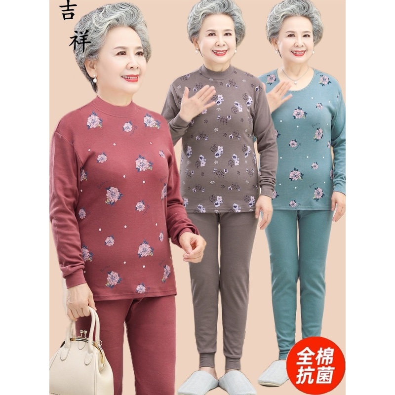 中年老年老人保暖内衣宽松版 半高领女士秋衣内穿套装 纯棉全棉毛衫