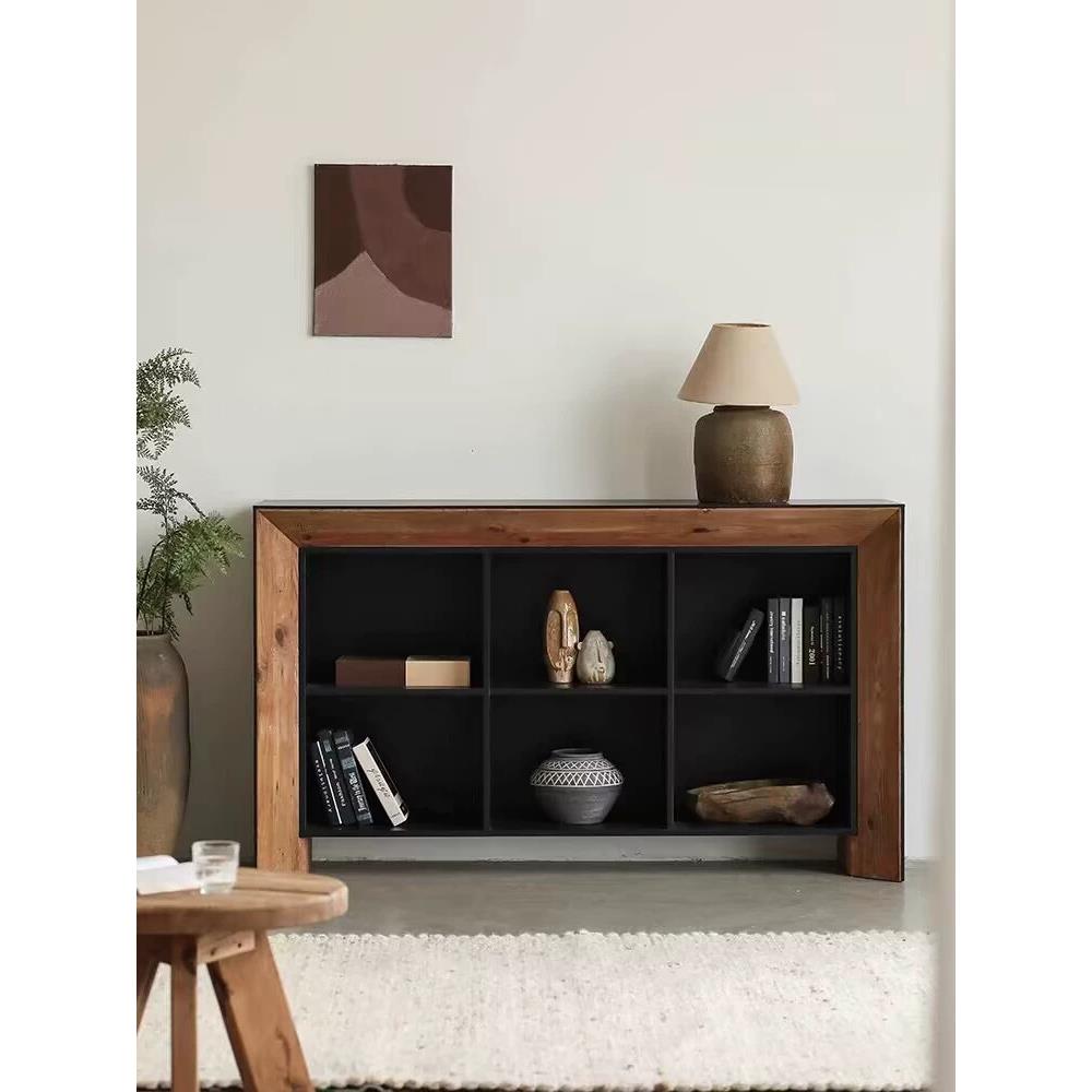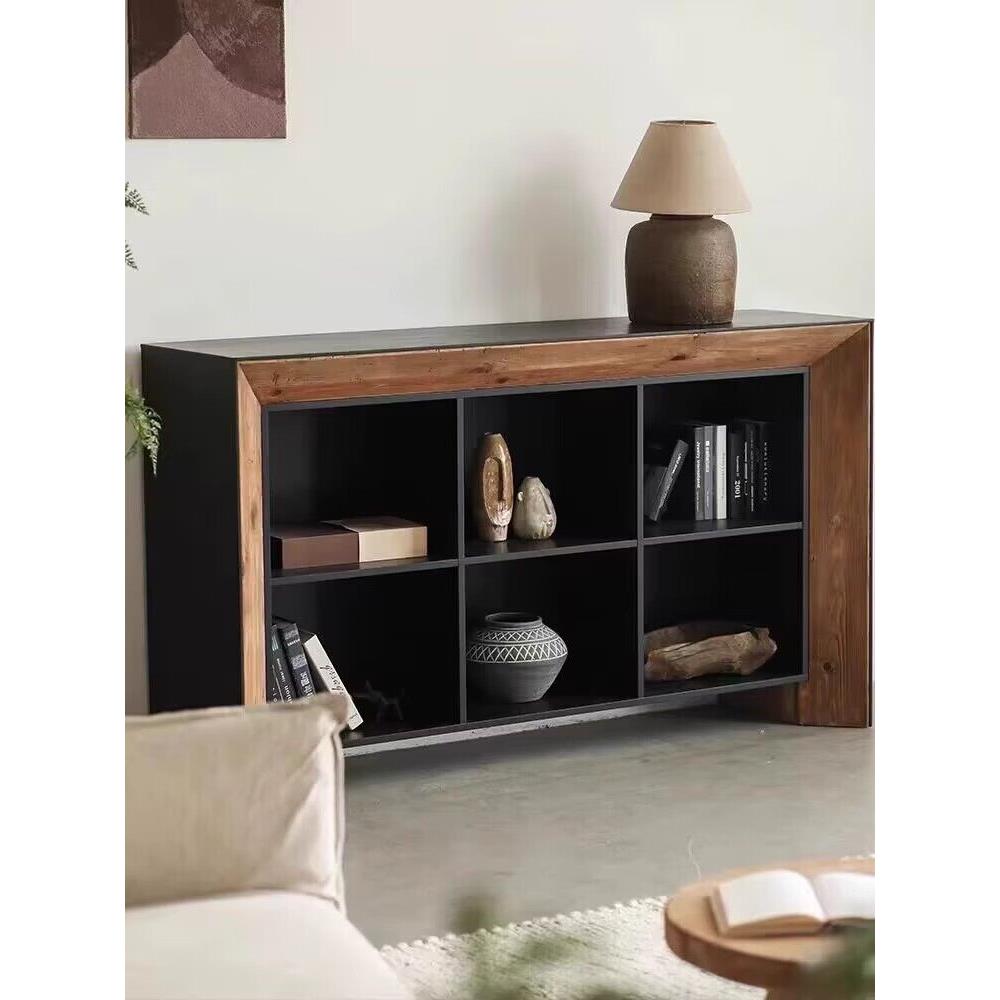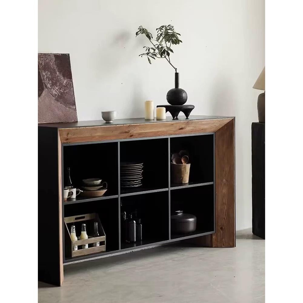 侘寂风复古黑色实木餐边柜客厅装 饰柜玄关柜靠墙一体走廊过道柜