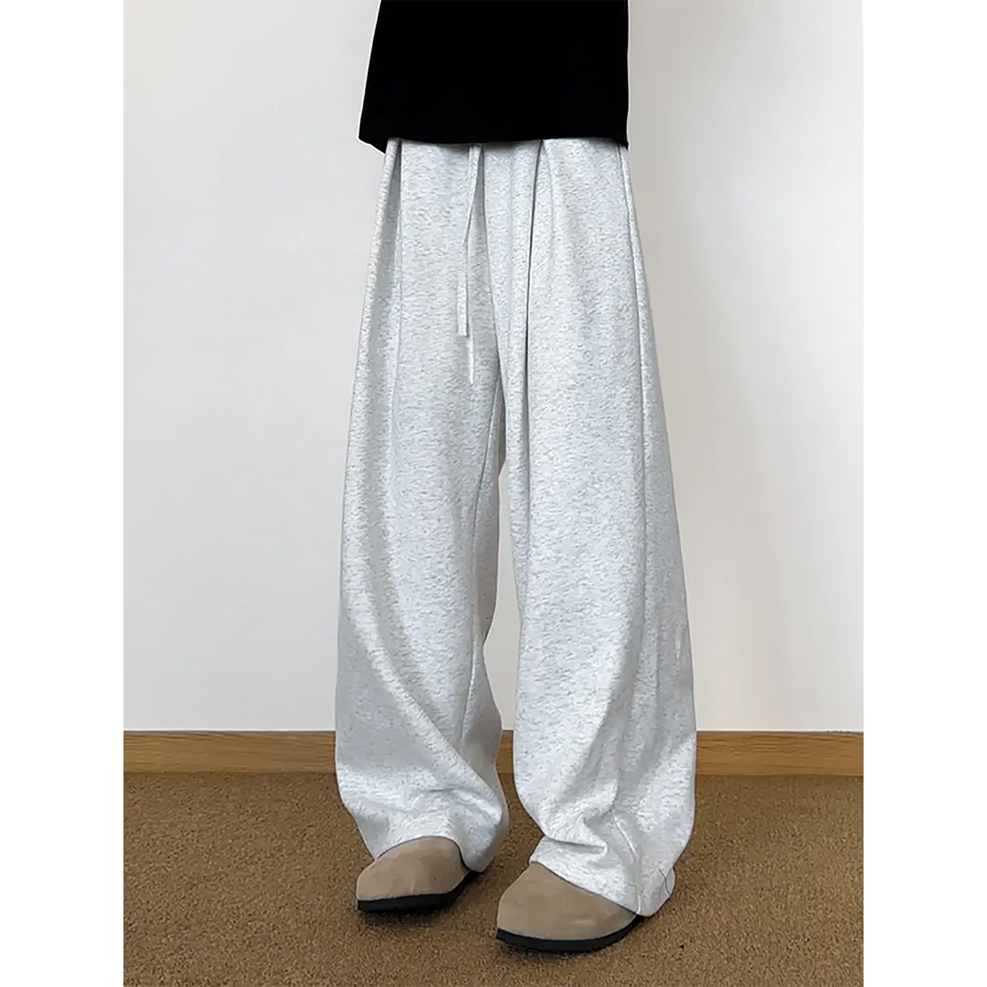 加绒街舞穿搭褶皱宽松休闲长裤 女秋冬季 子 灰色运动卫裤 自然涩美式