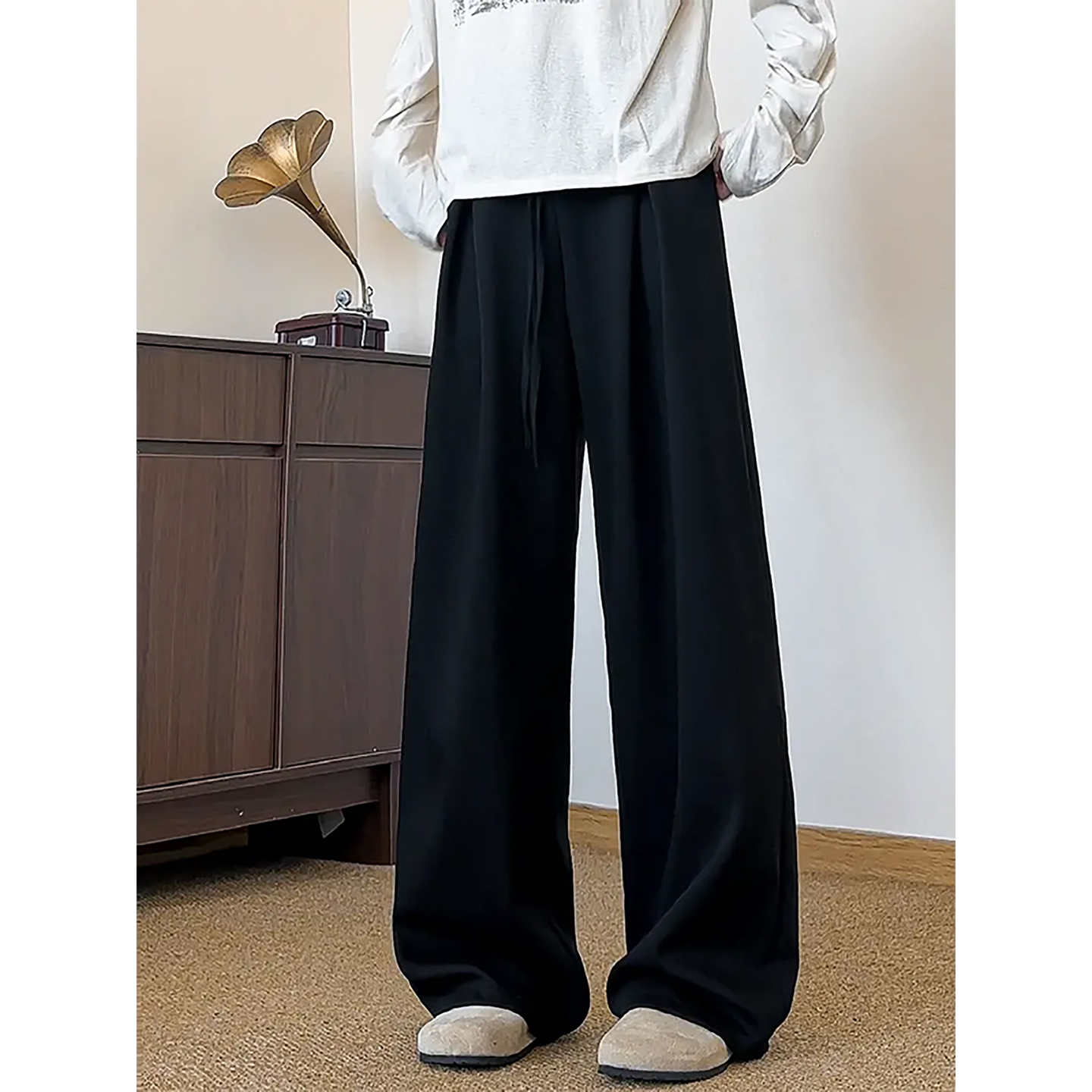 宽松阔腿百搭休闲裤 潮流垂感运动长裤 男秋季 V37重磅黑色直筒卫裤