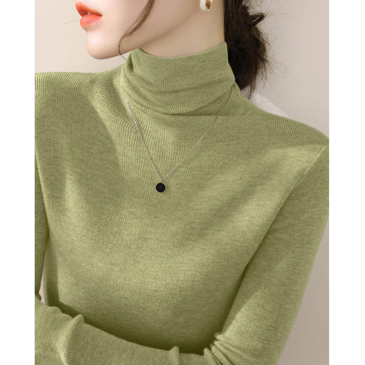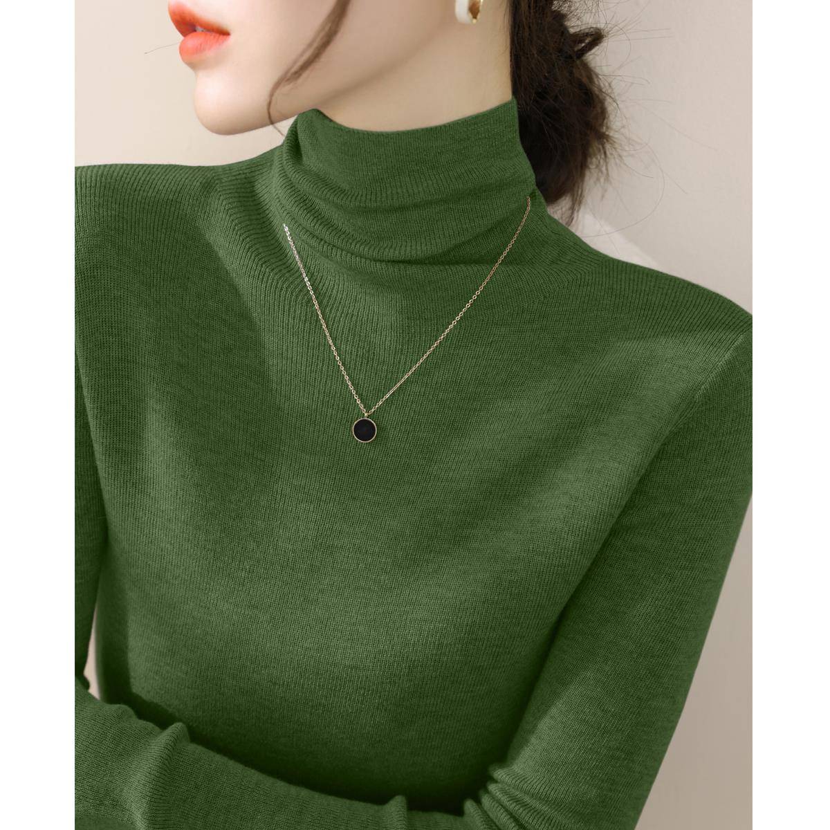 配大衣内搭绿色高领毛衣女秋冬新款 上衣1012h 洋气感针织打底衫
