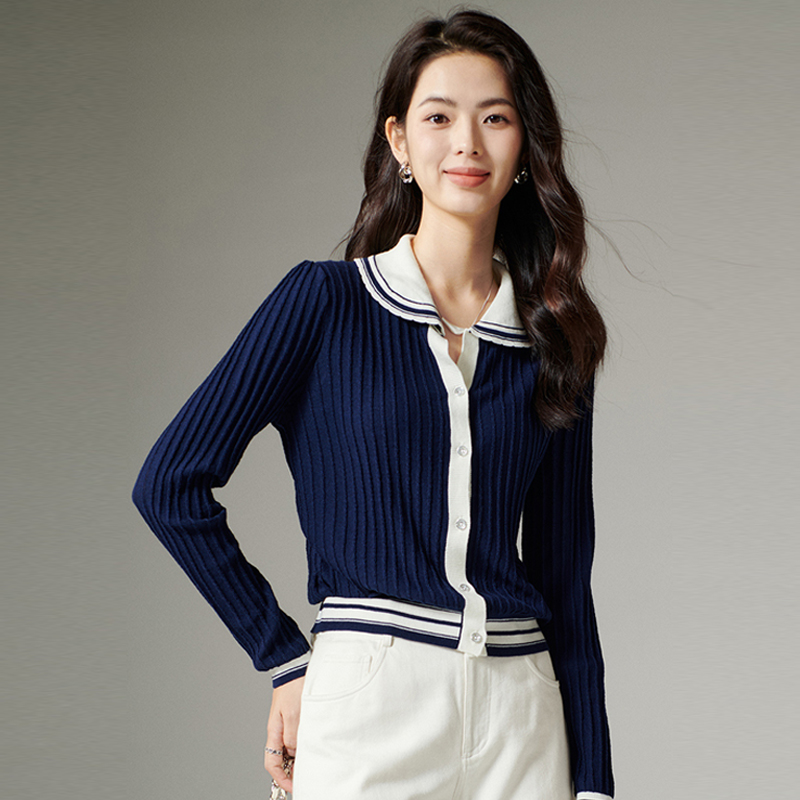 针织衫 条纹短袖 长袖 开衫 毛衣外套 RARN2025秋装 两件套圆领修身 新款