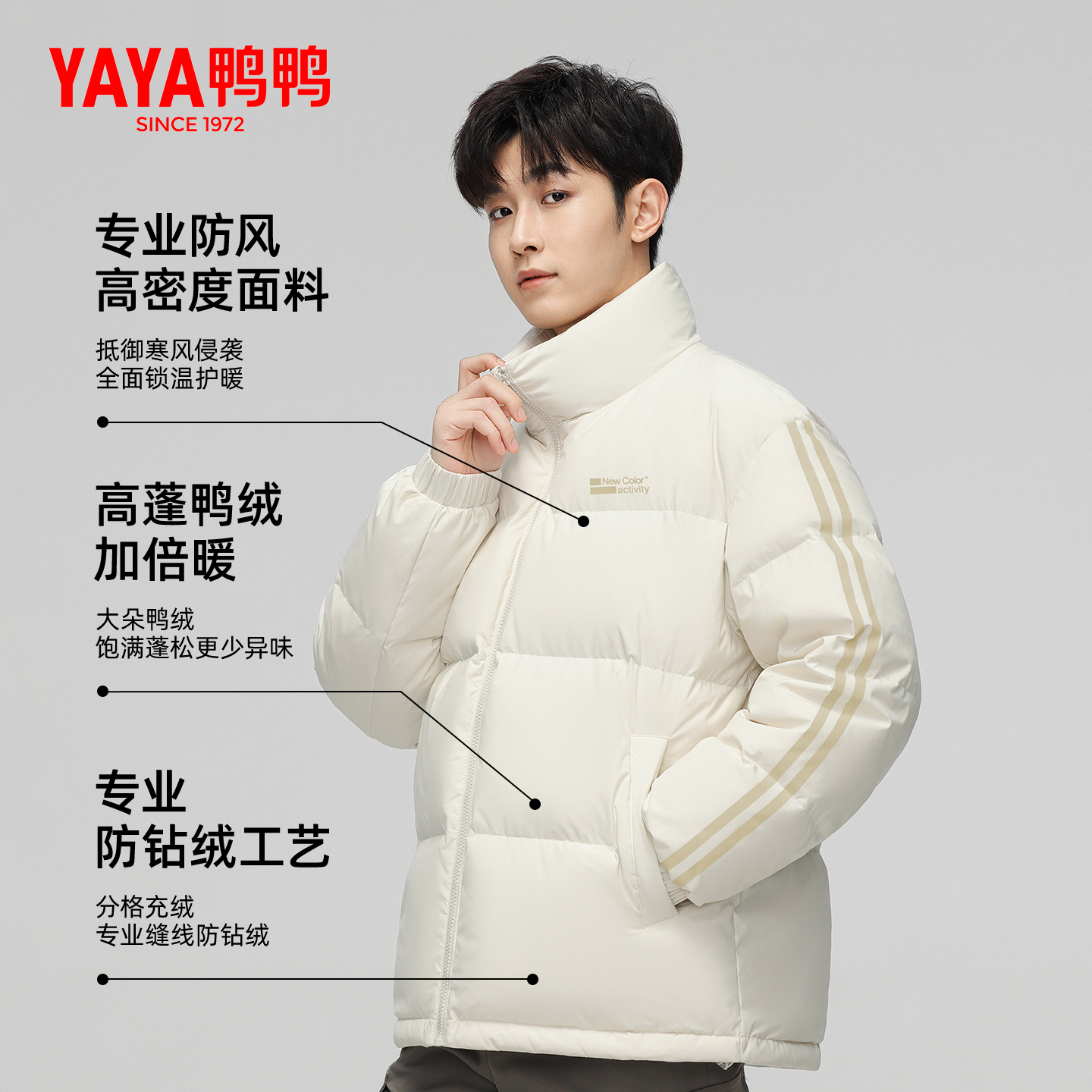 鸭绒保暖面包棉服防寒外套上衣 新款 安踏短款 四防运动羽绒服男冬季