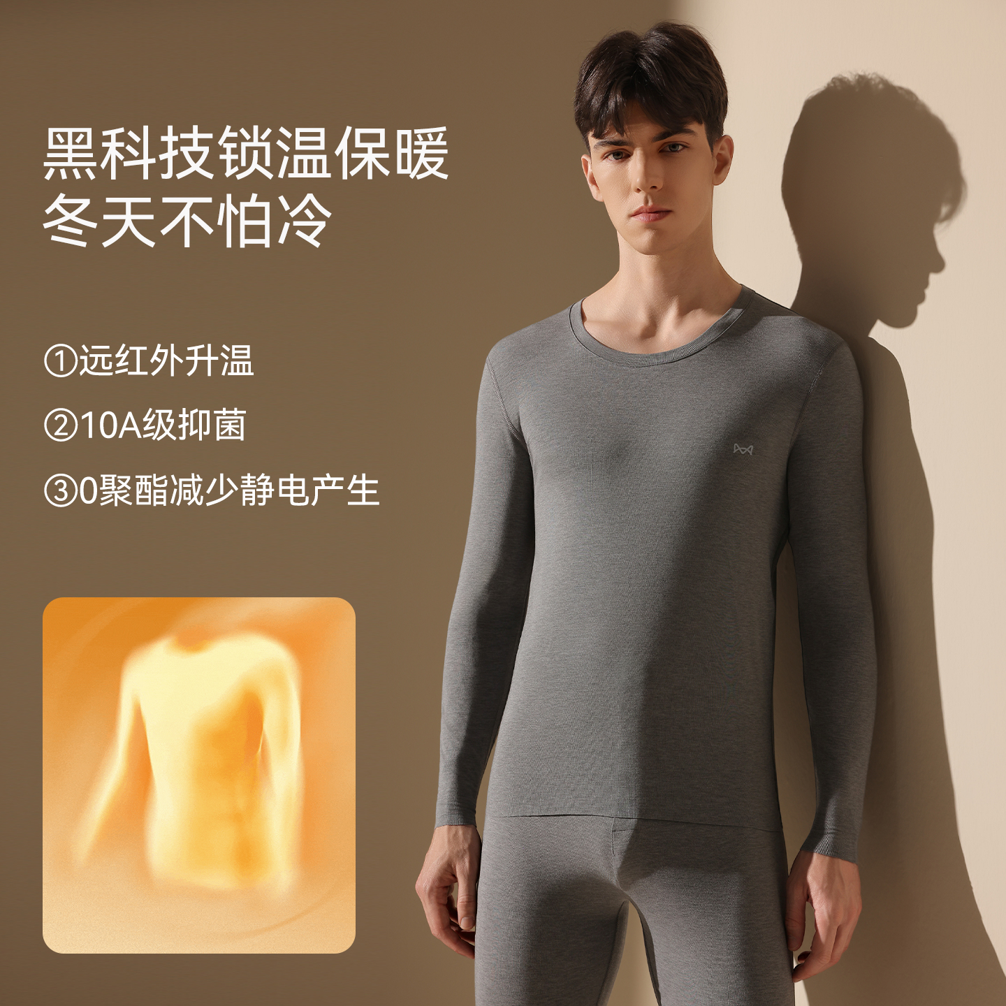 男 德绒发热肌底衣蚕丝美肤保暖内衣套装 猫人裸感贴身秋衣秋裤 男款