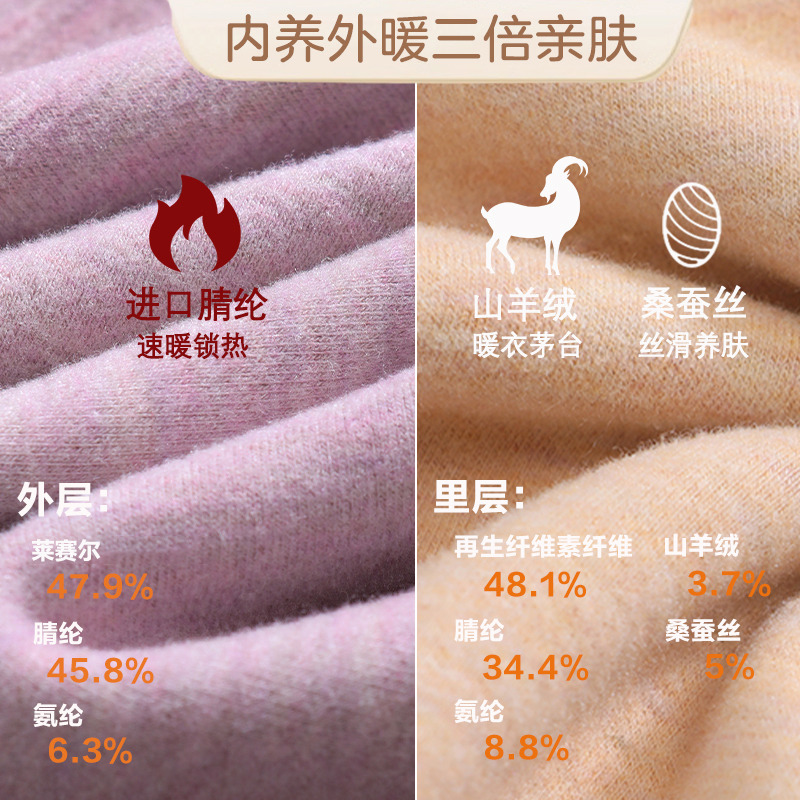 女士德绒保暖内衣2025秋冬新款 无痕打底蚕丝羊绒上衣 发热秋衣秋裤