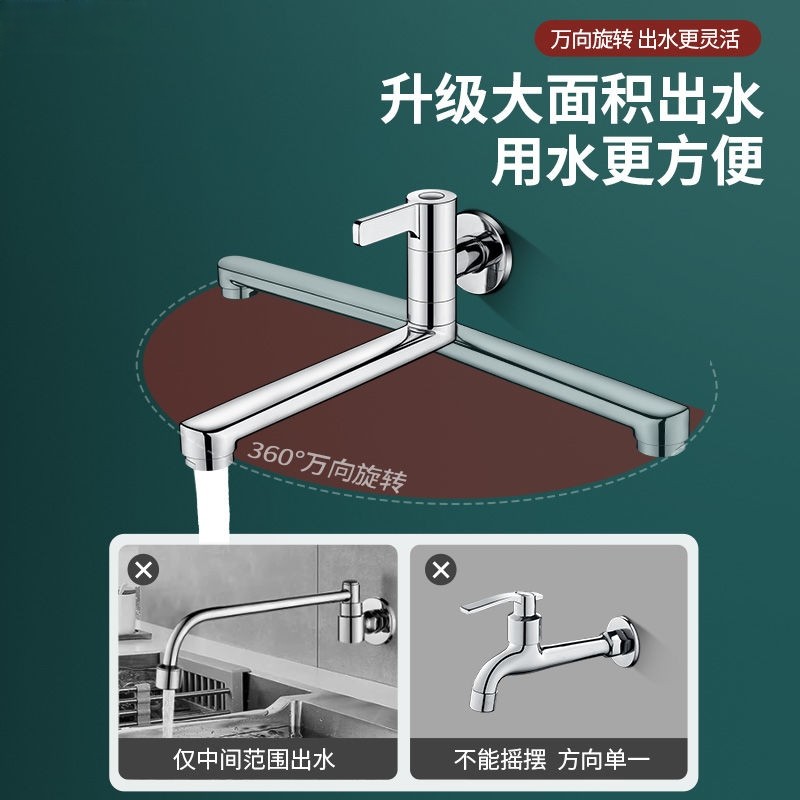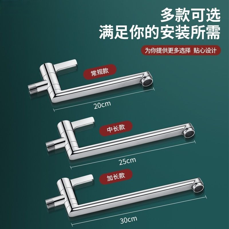 加长水龙头入墙式 单冷阳台专用拖把池厨房4分折叠可旋转全铜家用