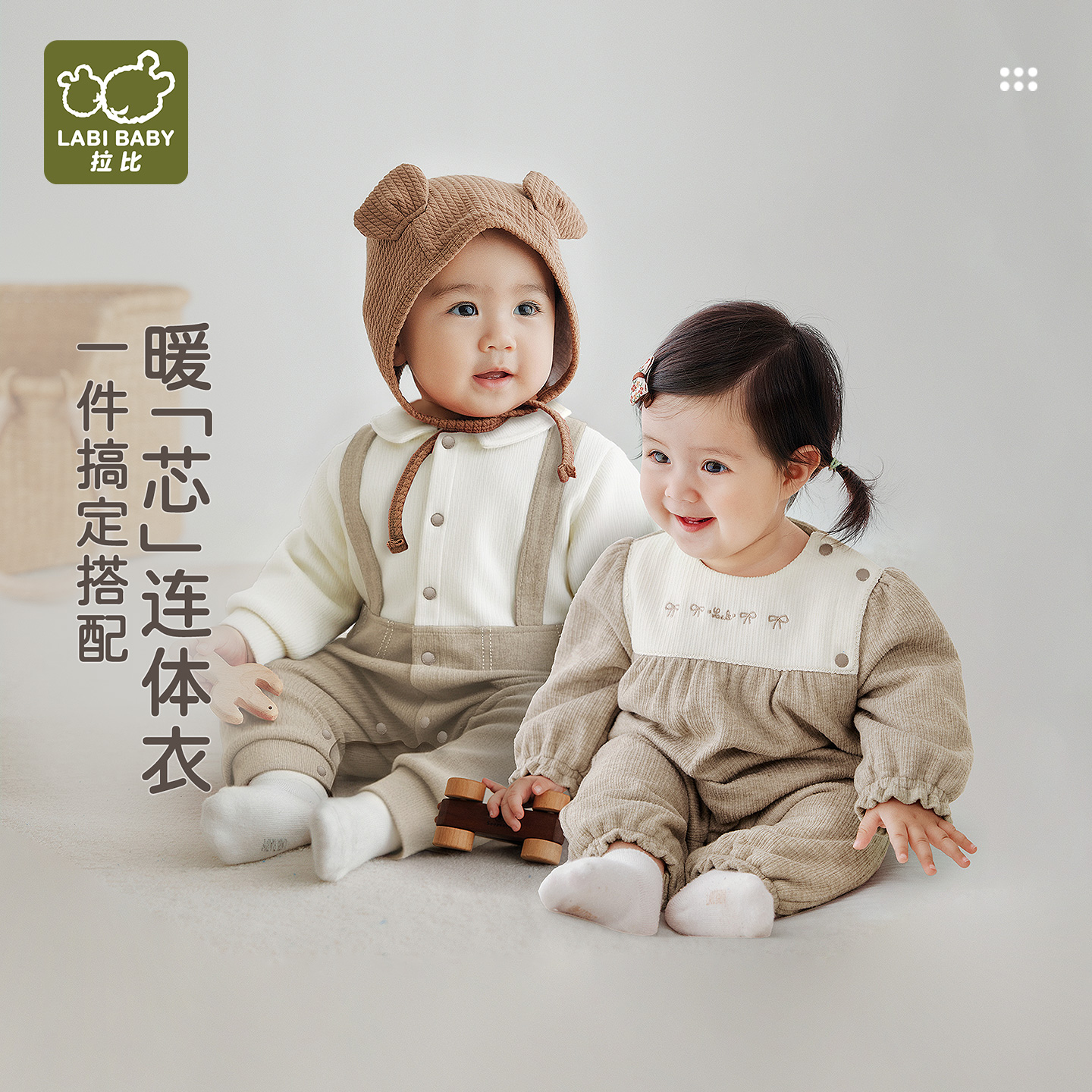 拉比婴儿偏开连体衣棉2025秋冬新款 哈衣爬服 宝宝复古加厚保暖长袖