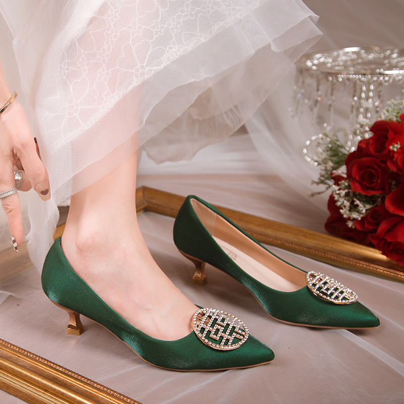 子敬酒秀禾结婚新娘出门上车鞋 礼服喜鞋 女 不累脚中式 小众绿色婚鞋