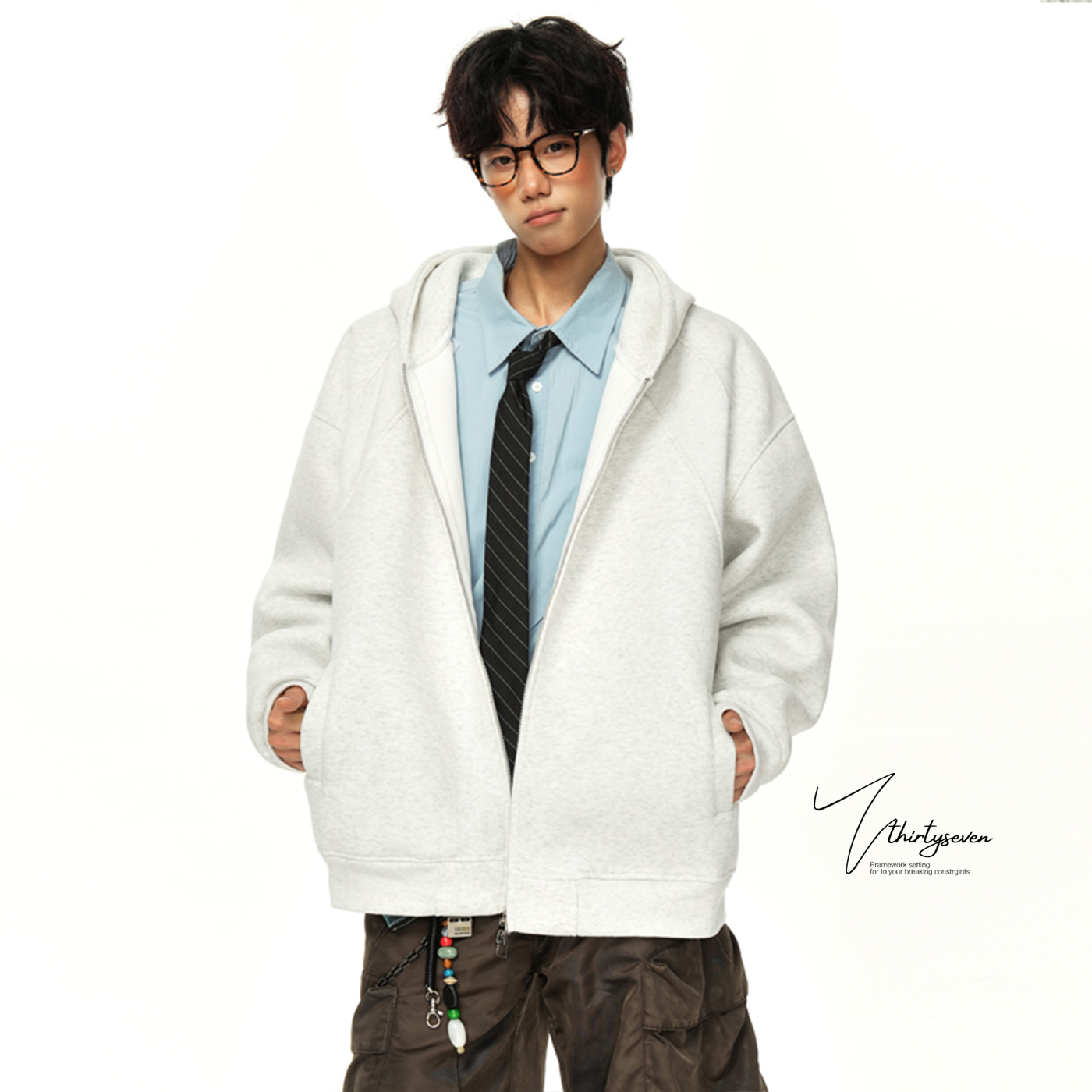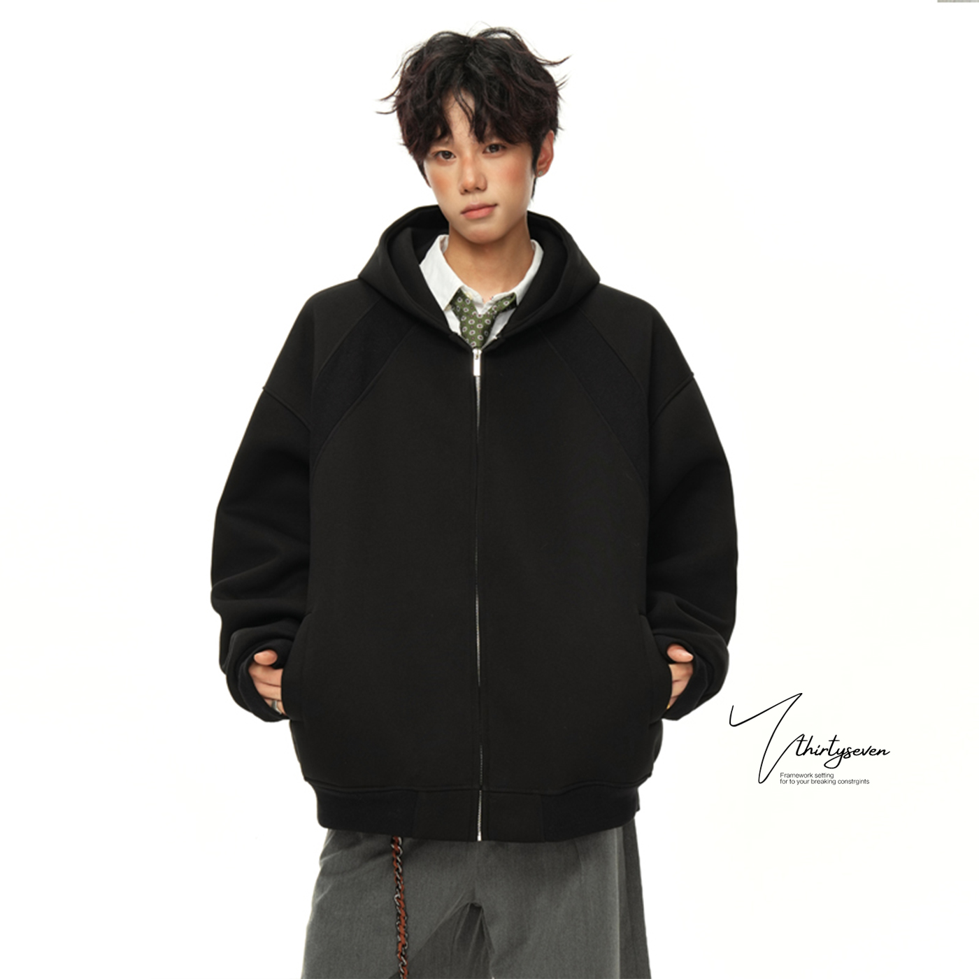 宽松休闲夹克上衣服 拉链开衫 回力外套男春秋新款 加绒连帽卫衣男款