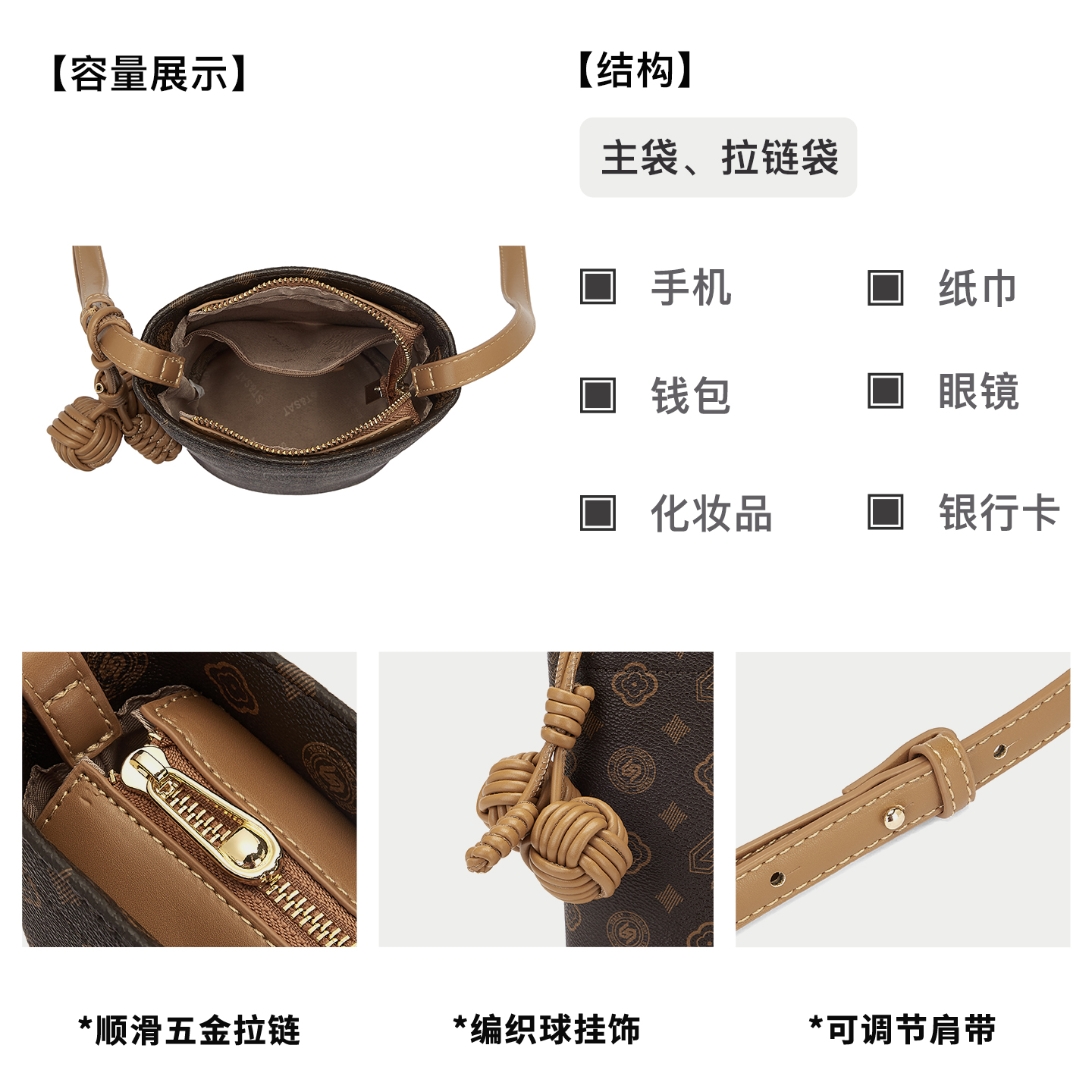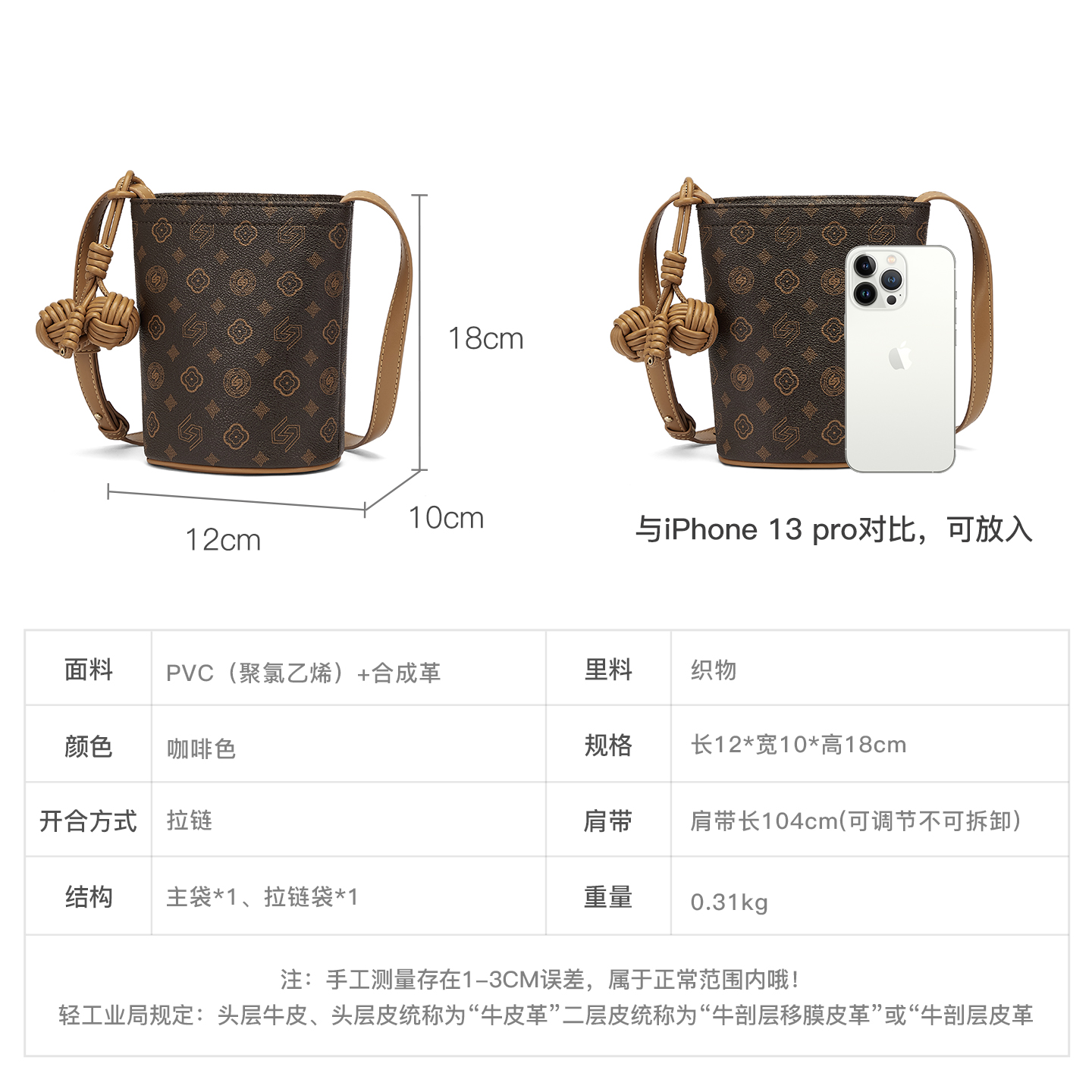 星期六包包女2025新款 秋冬单肩斜挎包休闲老花小水桶包手机包小包