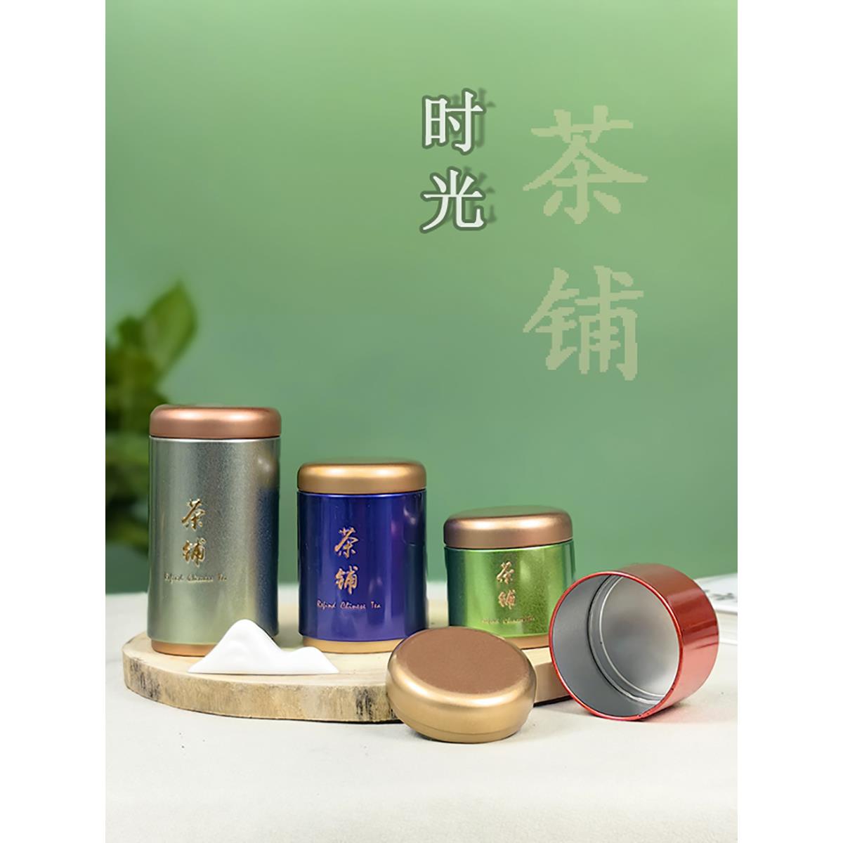 便携一两茶叶罐50克铁罐空马口铁小号茶叶盒迷你创意圆形旅行随身