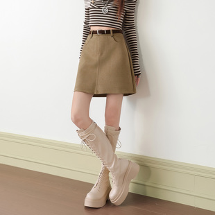 优雅菱格简约H型长裙 时尚 秋水伊人毛呢设计半身裙2025年冬季 新款