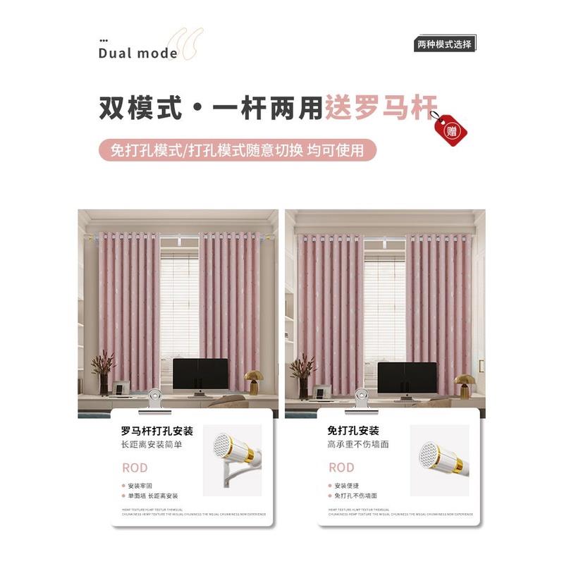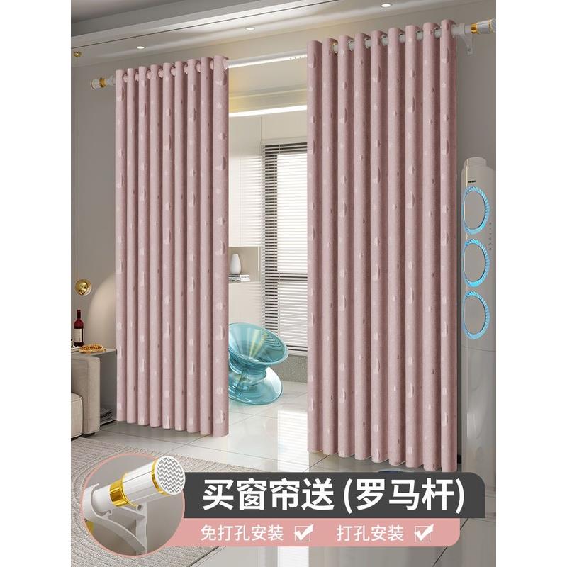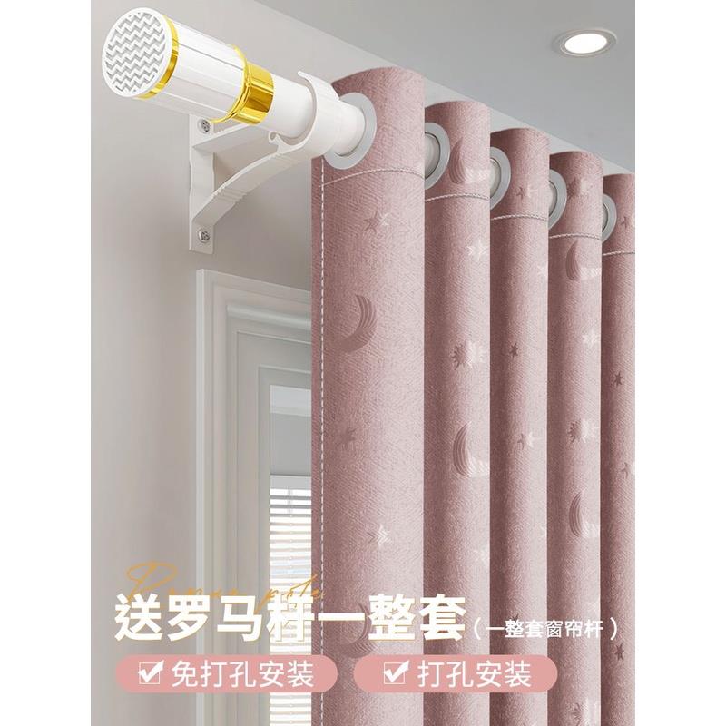 网红公主风窗帘卧室罗马杆一整套遮光2025新款 带杆全套 免打孔安装