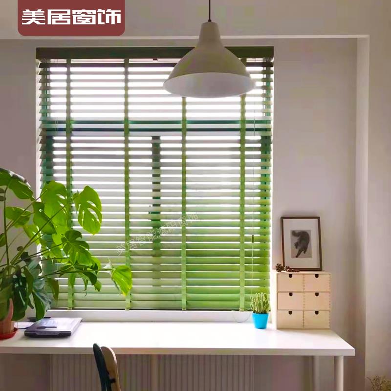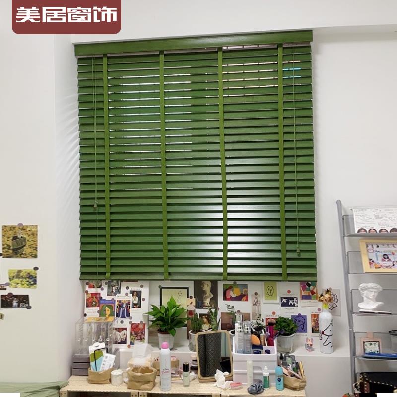 绿色实木百叶窗帘木质电动客厅办公室书房餐厅卧室遮阳光升降定制
