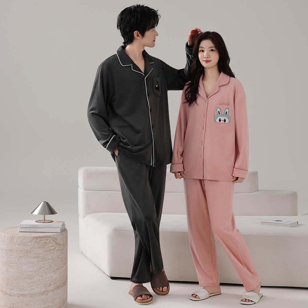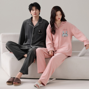 巨柔软 男女家居服套装 纯棉睡衣情侣春秋款 宽松大码 长袖 安之伴