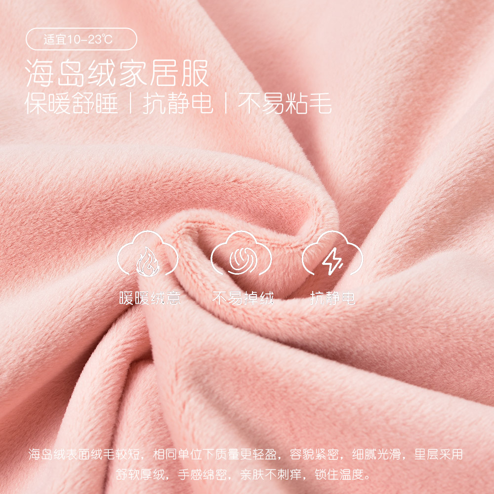 海岛绒可外穿家居服 简约薄款 睡衣女秋冬季 保暖珊瑚绒女士睡衣套装