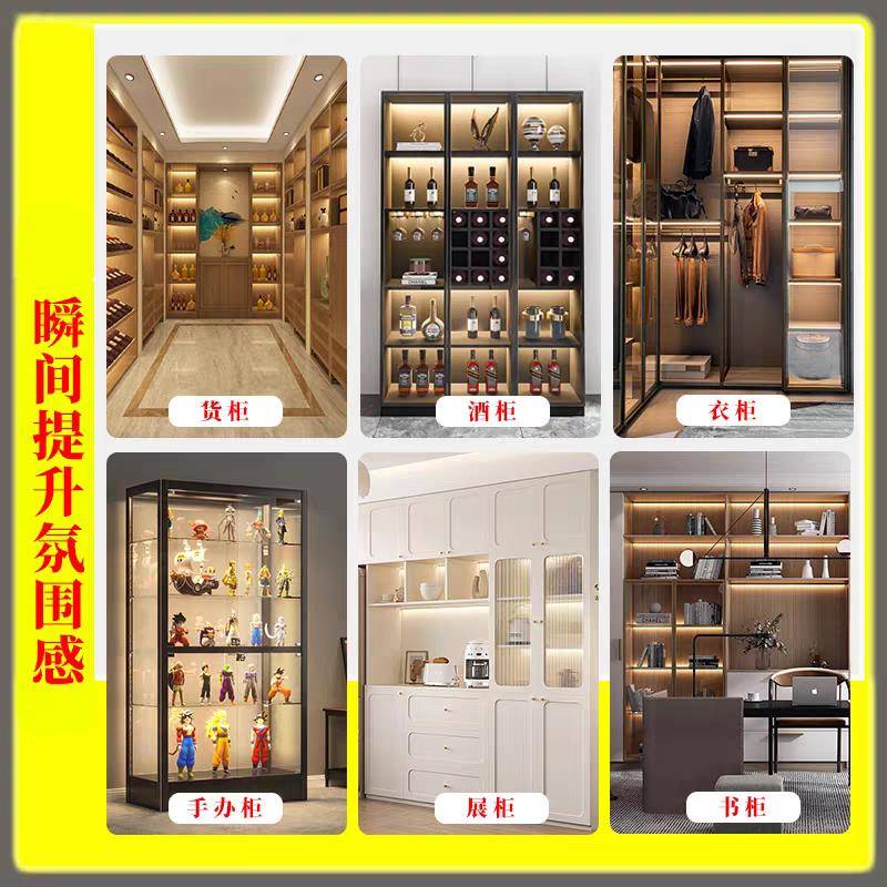 USB自粘灯带橱柜灯免开槽手办展柜酒柜衣柜橱柜暖光led灯条超薄