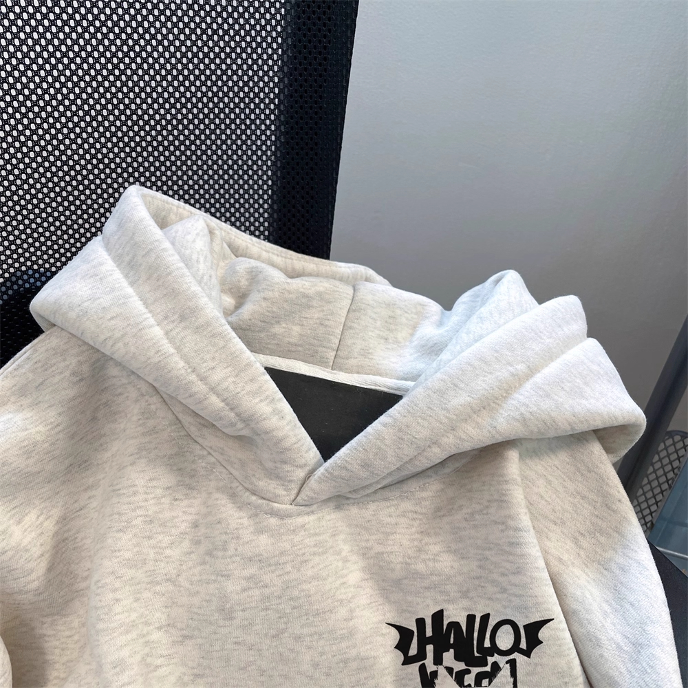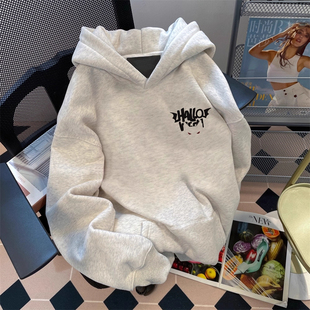 男女童美式 加绒加厚连帽卫衣秋冬中大童潮牌痞帅学生儿童外套帽衫