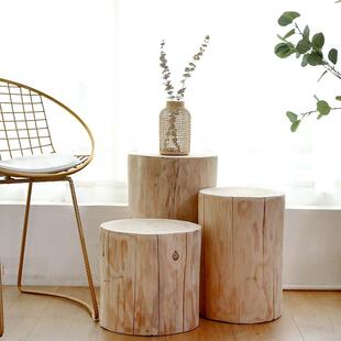 民宿实木墩子茶几边几北欧沙发角几原木凳子根雕木头方凳复古木桩