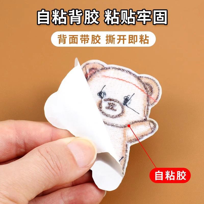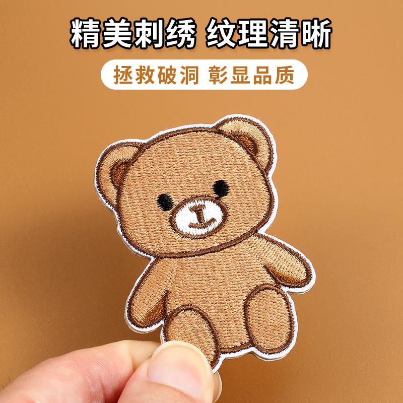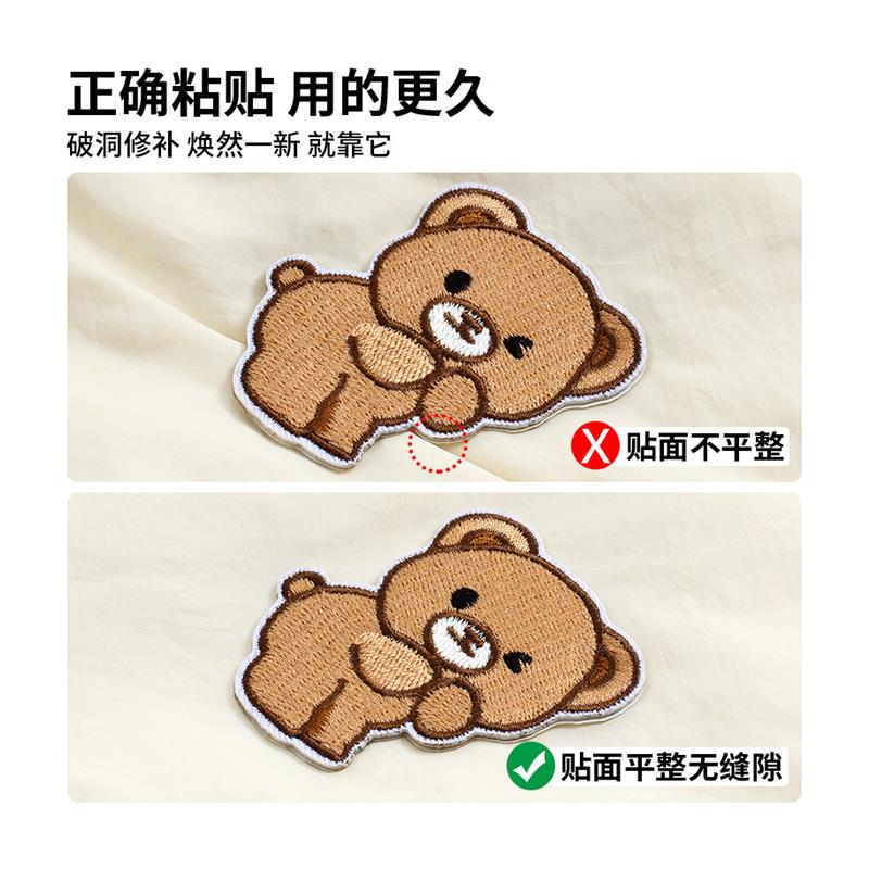 衣服补丁贴卡通无痕修补破洞裤 子羽绒服自粘免缝棕色小熊刺绣布贴