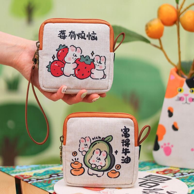 原创国潮棉麻布艺卫生棉收纳包可爱兔子学生姨妈巾包可携式 卫生棉