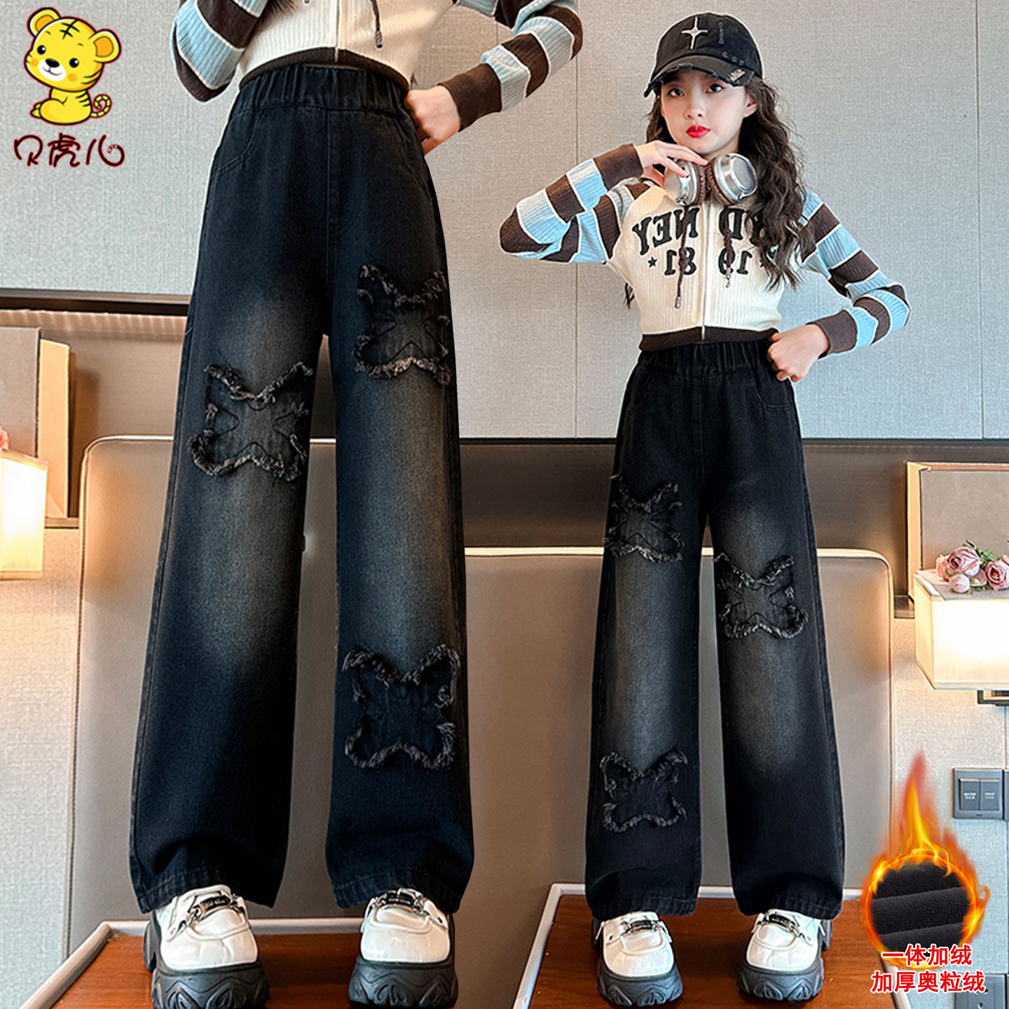 防褪色儿童弯刀裤 裤 春秋款 女孩洋气秋装 子 2025新款 左西女童牛仔裤